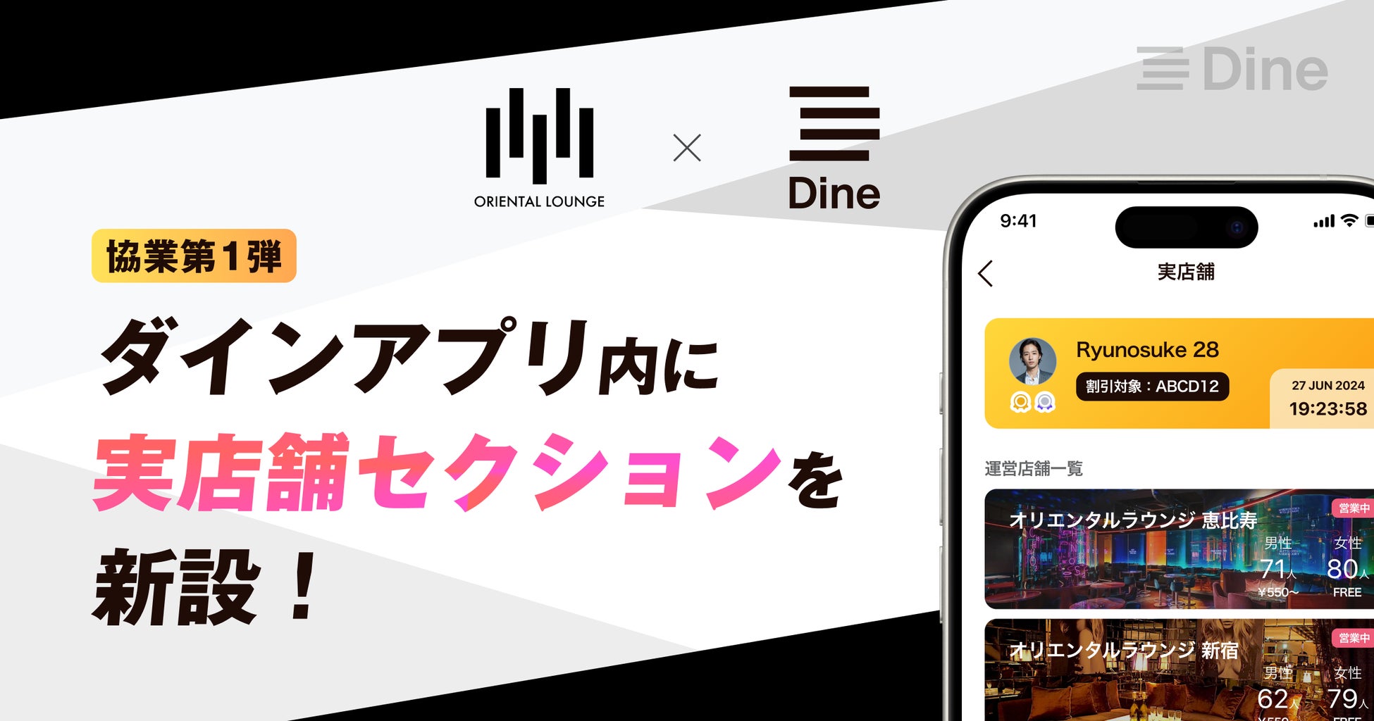 マッチングアプリ「ダイン」が、日本最大級の相席ラウンジ「オリエンタルラウンジ」によるM&A後、初の協業開始!