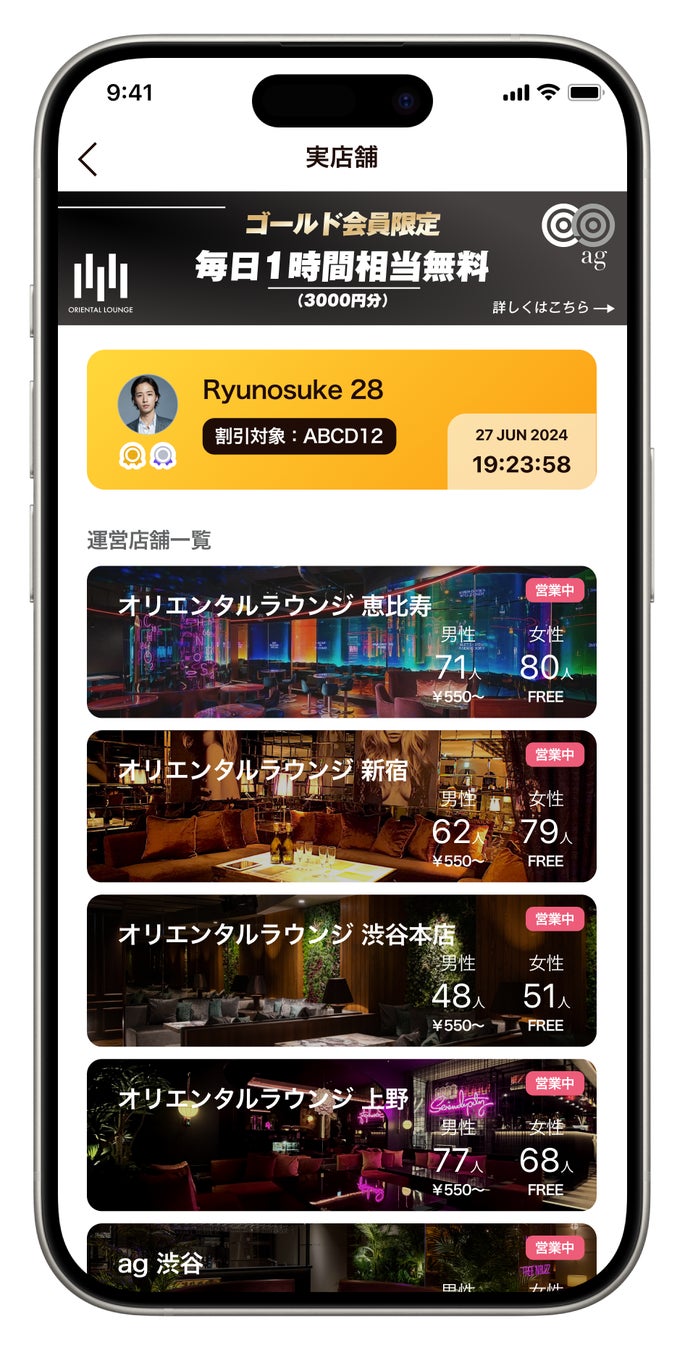 協業第一弾として、ダインアプリ内に実店舗セクションを開設しました。また、ダインの月額プランである「ゴールド会員」の男性利用者に対し、店舗利用時の割引サービスを実施します。