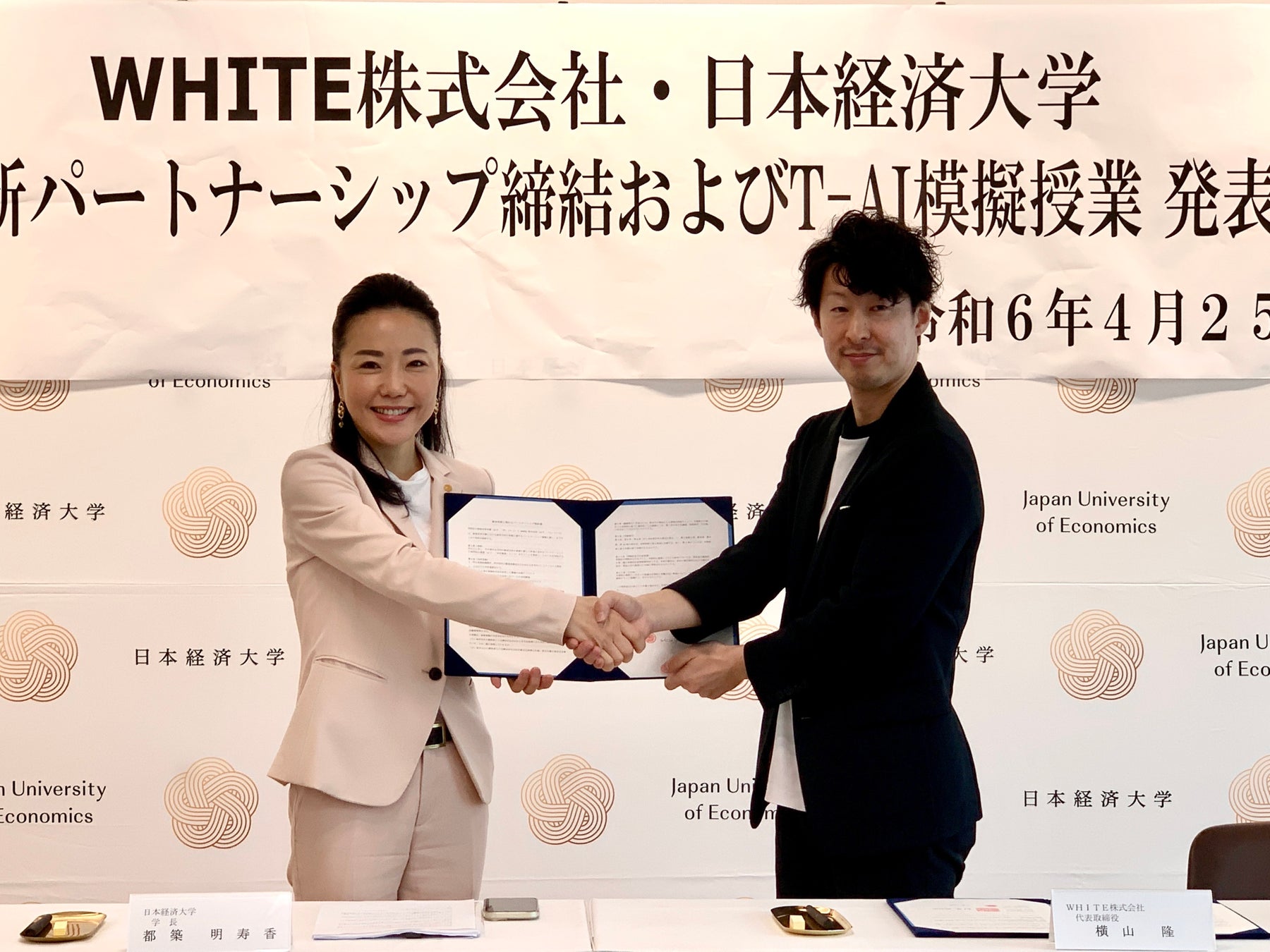 ChatGPT等の生成AIの登場により、本学でも生成AIのガイドラインを発表し、積極的な活用を進めてまいりました。生成AIは教育を大きく変える可能性を秘めています。今後、WHITE株式会社と日本経済大学は共同で、生成AIを活用し教育の質を向上するとともに、学校の業務革新を目指してまいります。