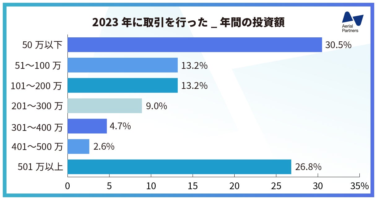 同様のグループに「年間の投資額」をヒアリングする設問では、「50万円以下」が約31%、「501万円以上」が約27%と、ほぼ同数で二極化された結果となりました。