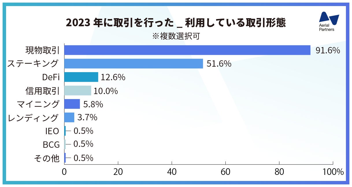 ■約8割が2023年度に取引あり、取引形態は「現物取引」に続き「ステーキング」が約半数で2位
