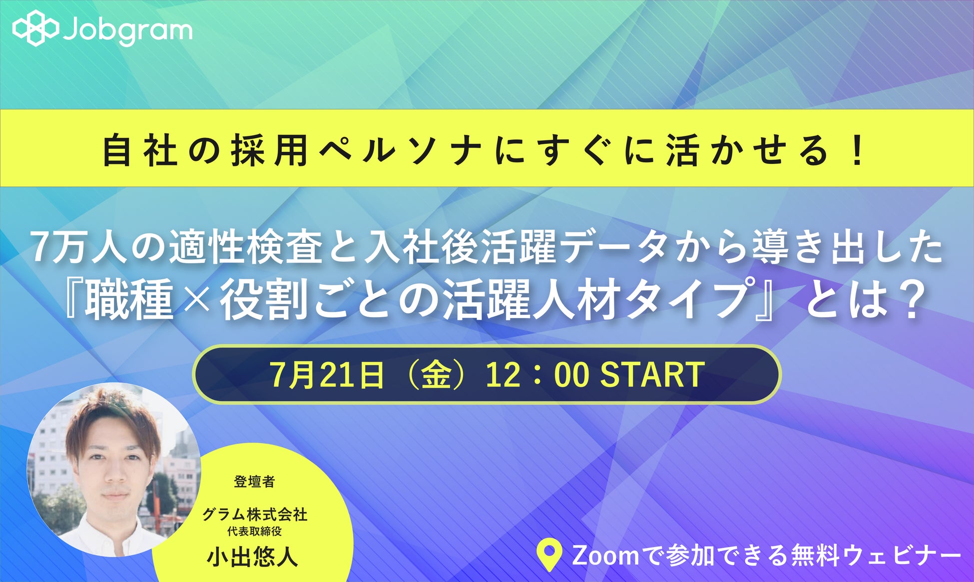 【無料オンラインセミナー】7/21(金)『自社の採用ペルソナにすぐに活かせる!7万人の適性検査と入社後活躍データから導き出した「職種×役割ごとの活躍人材タイプ」とは?』を開催