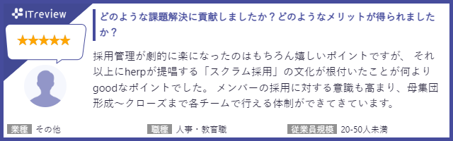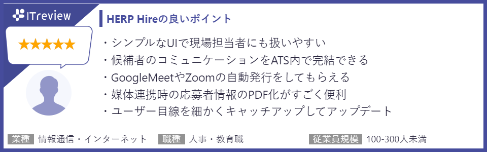 ■『HERP Hire』へのお客様の声※ITreview掲載のレビューより一部抜粋