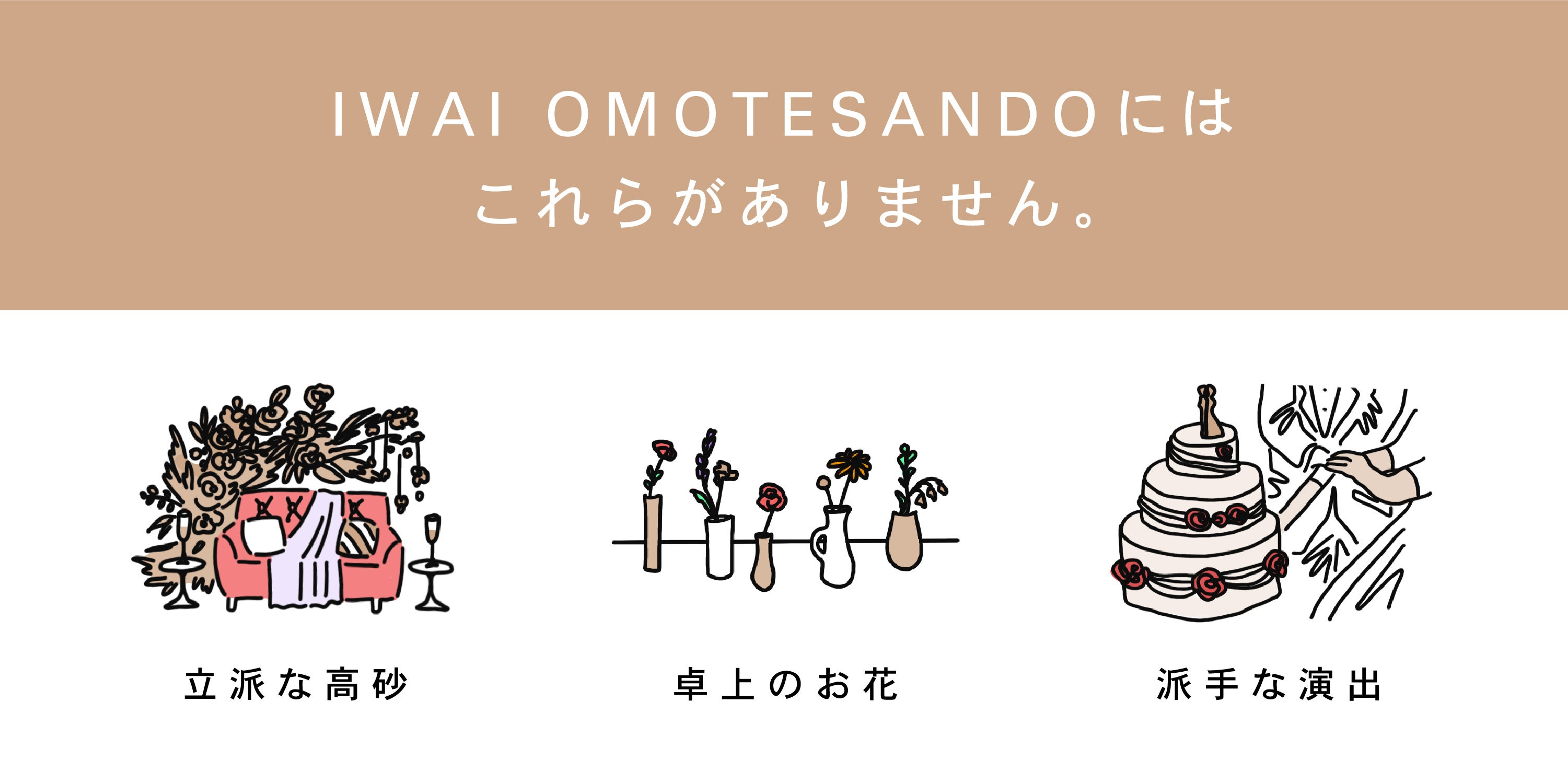 「私たちは、人々が愛し合うための、機会と勇気を提供し、パートナーシップの分断を解消します」をパーパスに掲げ、「IWAI OMOTESANDO」を拠点にウェディング事業を展開。“おふたり中心”の披露宴スタイルではなく、共に時間を楽しむ“ゲスト中心”の新しいスタイルで行う結婚式を提供し、大手業界クチコミサイト「ウエディングパーク」にて東京エリア内で1位を獲得。
