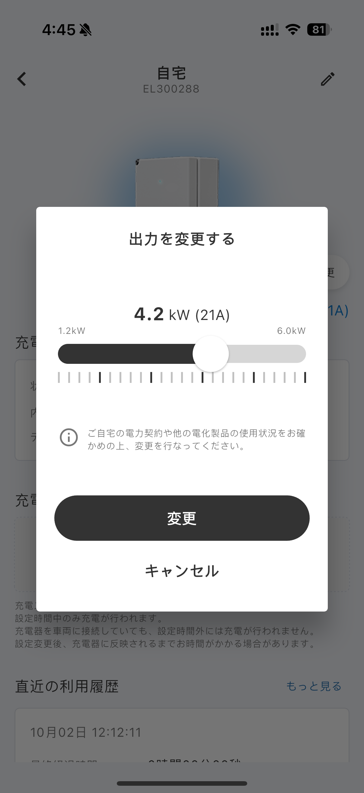 一般家庭の電力契約(40A〜50Aが主流)では、家電との併用でブレーカーが落ちることがあります。アプリで出力を調整することで、契約アンペアを変更せずに安全に充電できます。