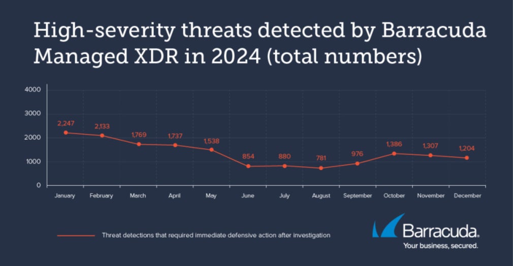 バラクーダネットワークス、「Barracuda Managed XDR」による2024年のセキュリティ脅威の調査結果を発表