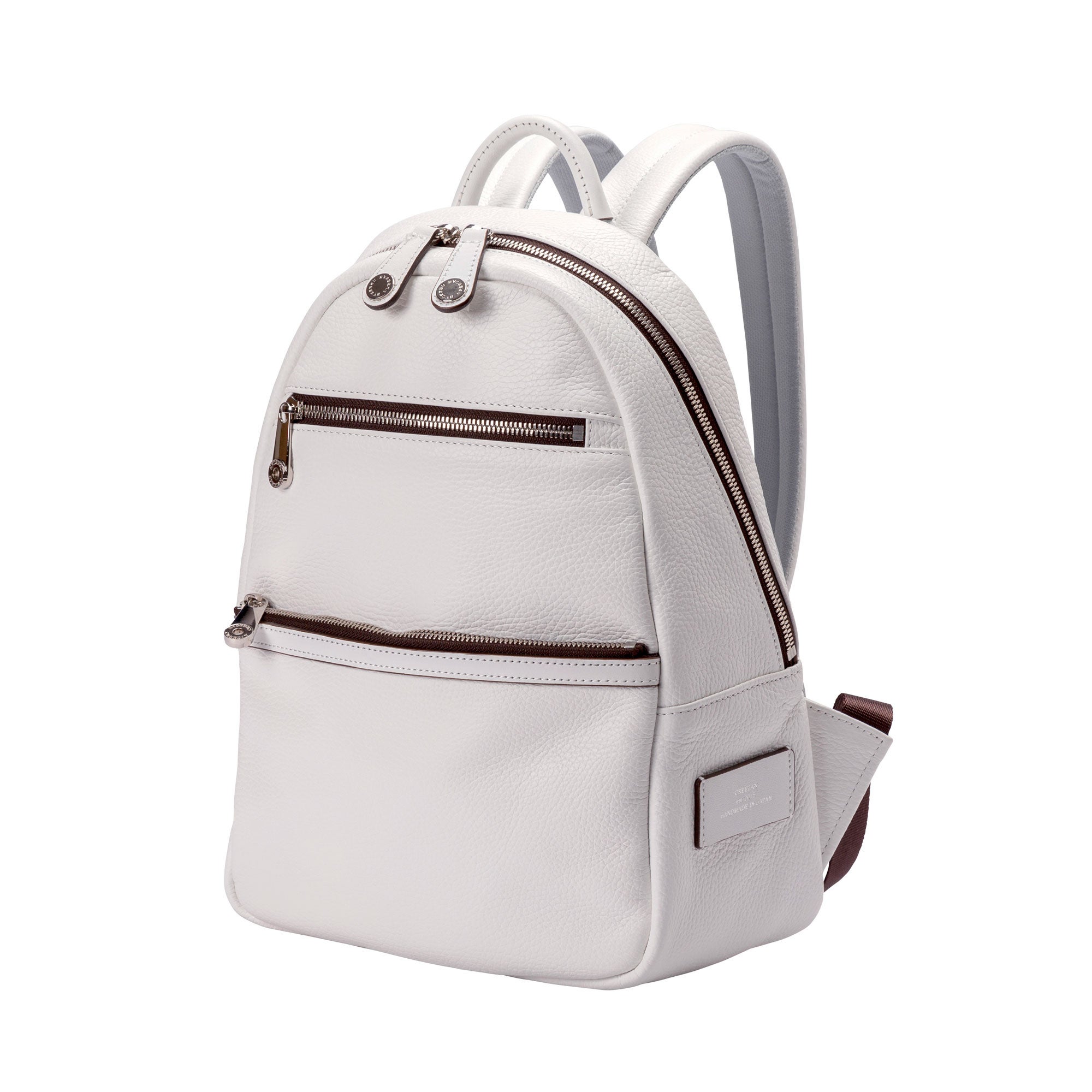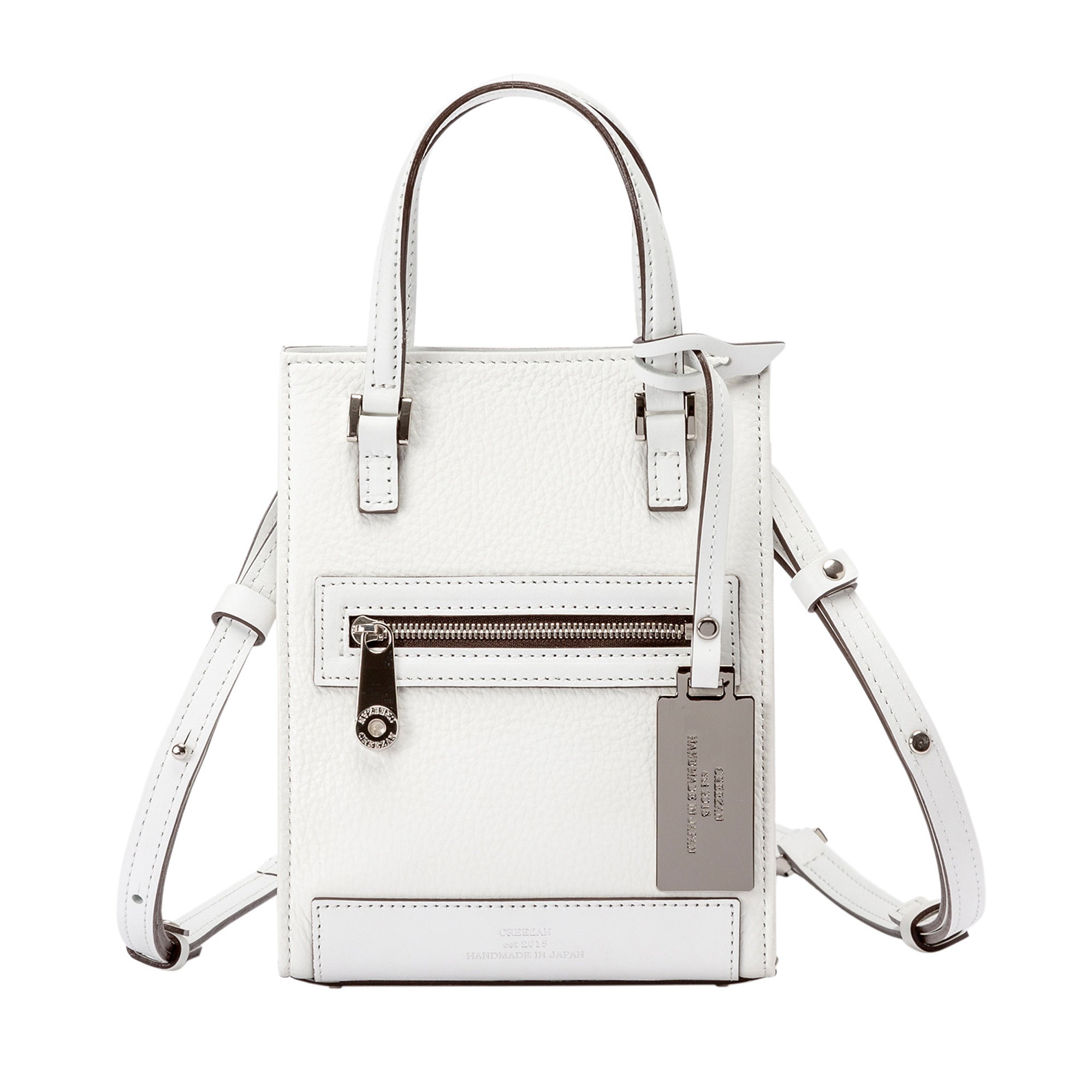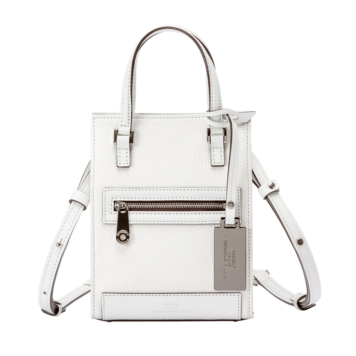 ブランド名を刻印したメタルパーツは、丁寧に高い精度で加工された高級感のあるオリジナルパーツ。 ホワイトのレザーと相まってバッグを際立たせます。ファスナーは、YKK社製でファスナーの貴婦人とも言われるEXCELLA(エクセラ:エレメントひとつひとつの全面に入念な磨きをかけた滑らかさが特徴)を使用しています。シュリンクレザーには強撥水加工を施し、雨や汚れに強く丈夫です。