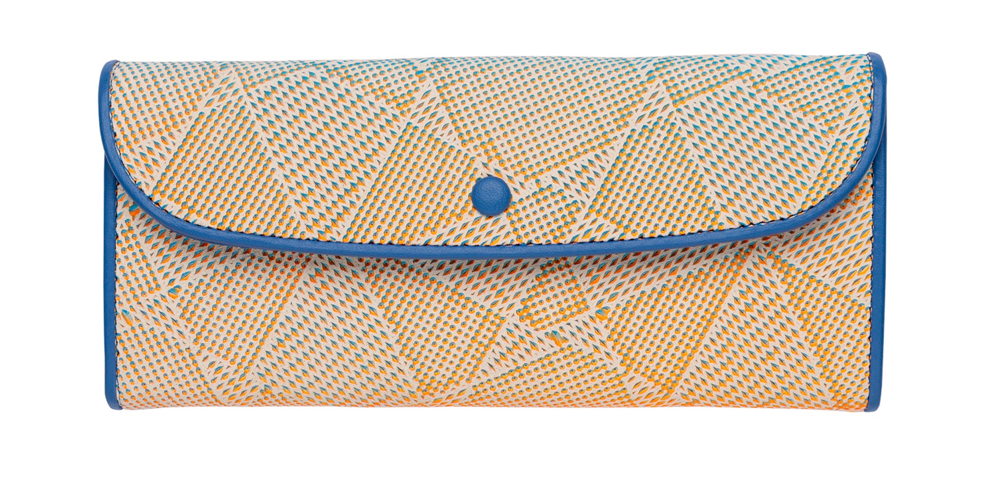 染色に独自の薬品を使っているため、柔らかいソフトな革でも繊維のしまりがあり、通常繊維の粗くなるお腹の部位のレザーでもしっかりと形をキープする加工を施しています。さらに、日本のタンナーでは出せない鮮やかな発色も魅力です。まるでフルーツのような多彩なカラーバリエーションで、手に収まりやすい丸みのあるデザインを取り入れています。