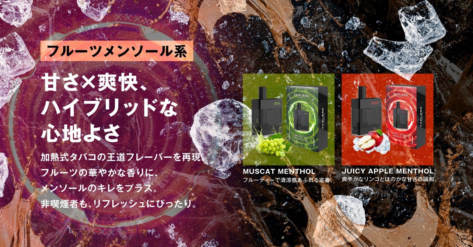 旧モデルでも人気で、リピーターの多かったメンソール系は、幅広い喫煙者の好みに合うように、こだわりぬいた3種(スマッシュメンソール・ウルトラハードメンソール・アイスメンソール)から選べます。