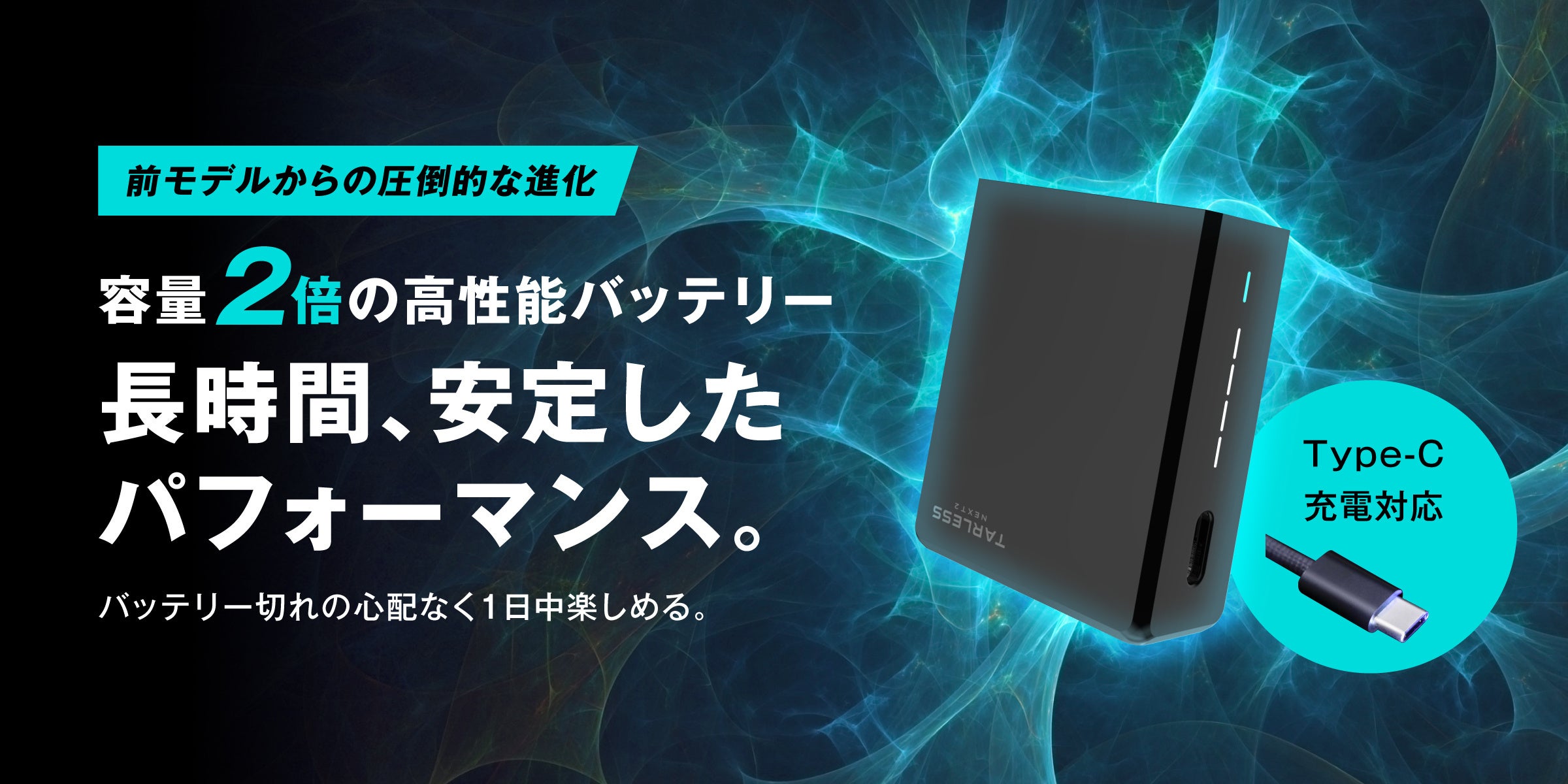 旧モデルから容量2倍の高性能バッテリーを搭載。