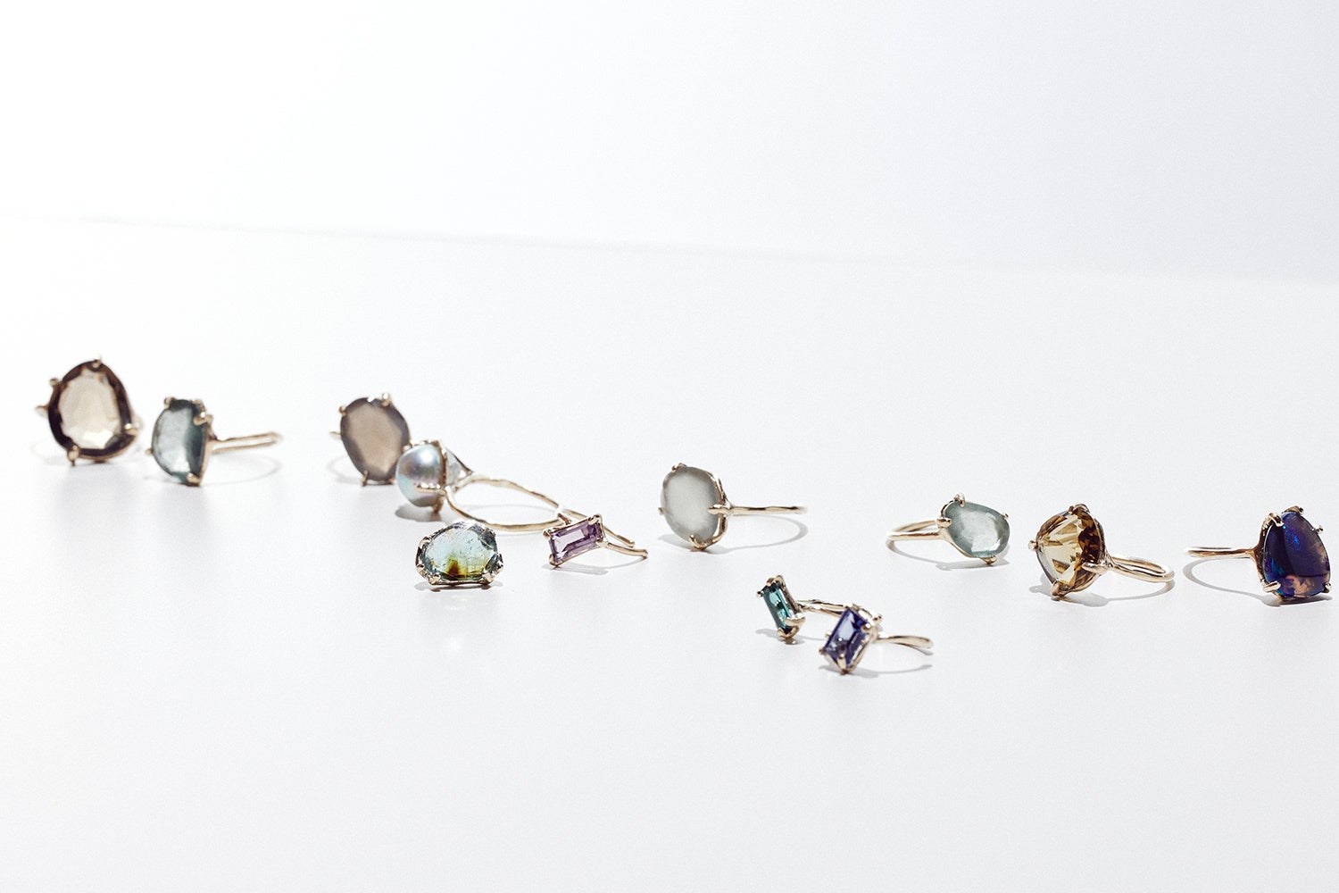 水の流れや風、光などの自然現象、目に見えるもの、目に見えないもの、身近なもの、理解を超えたもの、さまざまな現象をテーマに、シルバー、ゴールド、天然石などを使用するジュエリーブランド。ミニマムでデジタルな現代生活で、何気なくお使いいただけるような自由でさりげないデザインです。