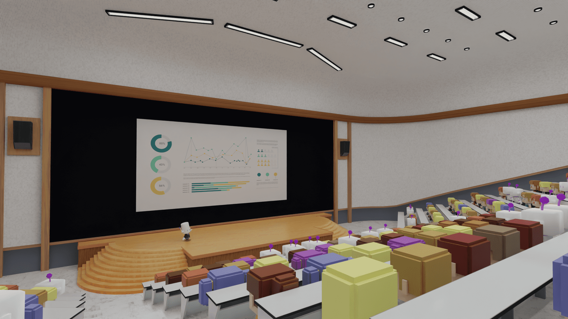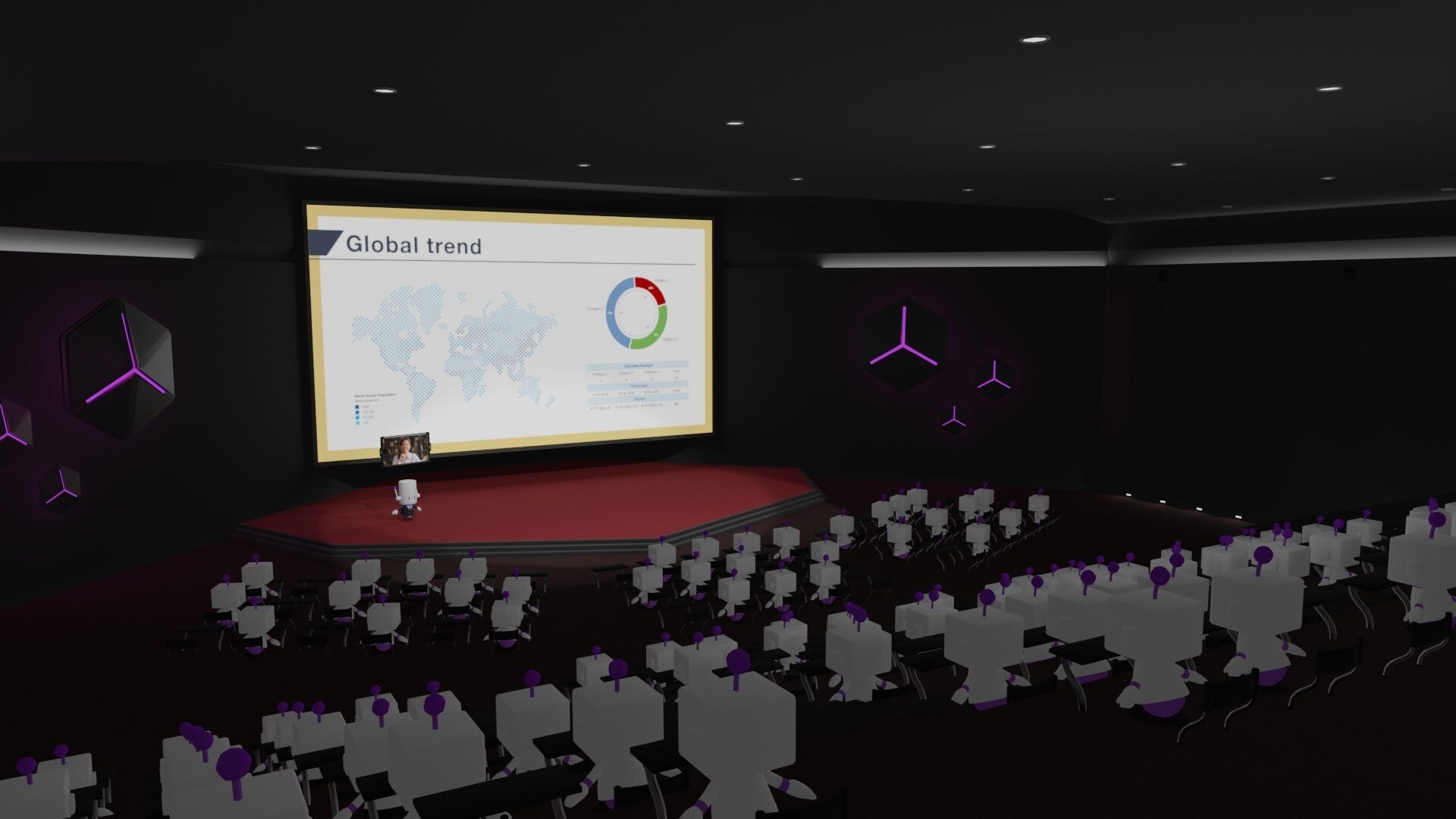 音声システム:ステージからの一方向音声、距離感と方向性の音声 その他機能:テキストチャット、音声チャット、ダイレクトチャット、 画面共有、Webカメラ、アンケート機能 |
