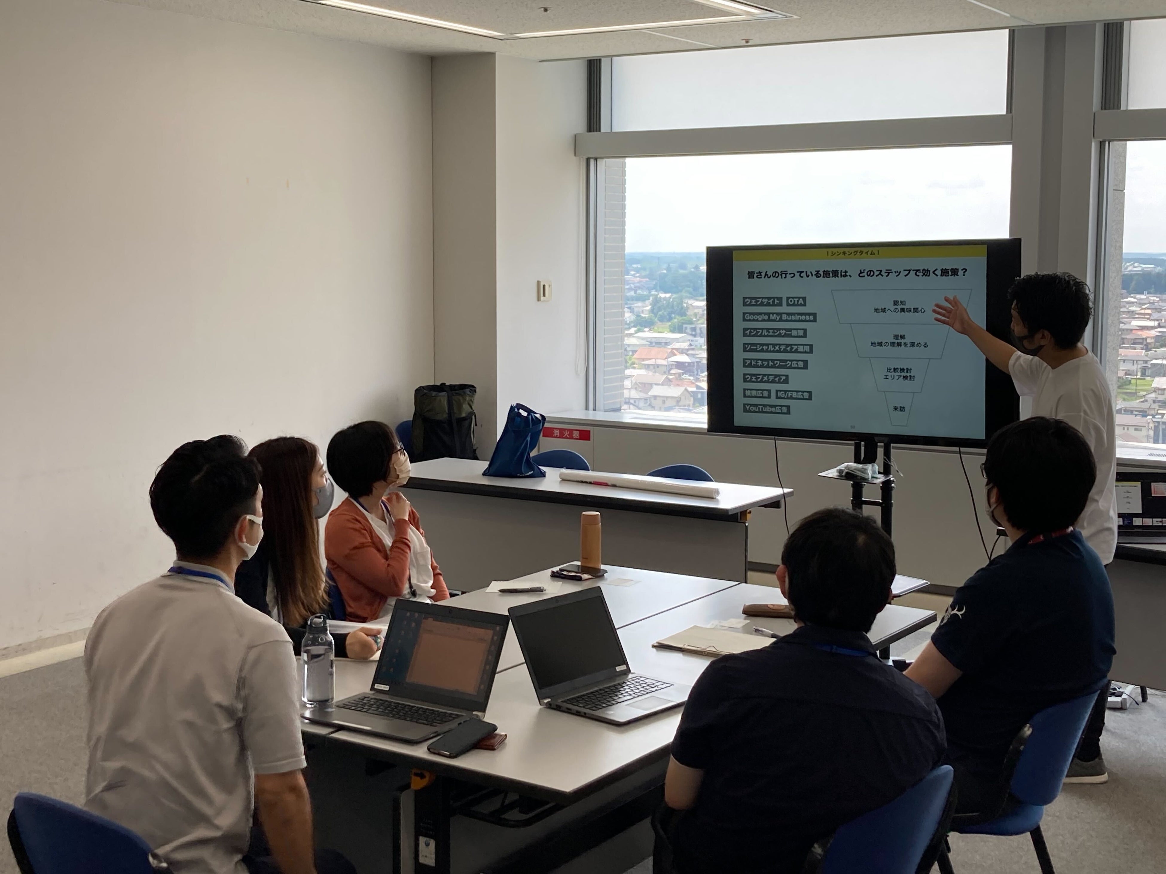 デジタルマーケティングに関する基礎講習はもちろんのこと、実施中の施策を用いて効果測定方法をワークショップ型式で学ぶなど、各自治体や担当者の実務に即したプログラム構成が特長です。また、単なる勉強会だけではなく、担当者に寄り添い伴走支援も実施するため、“べき論”ではない実行可能な解決策を一緒に導き出したり、次期施策の提案をしたりすることが可能です。