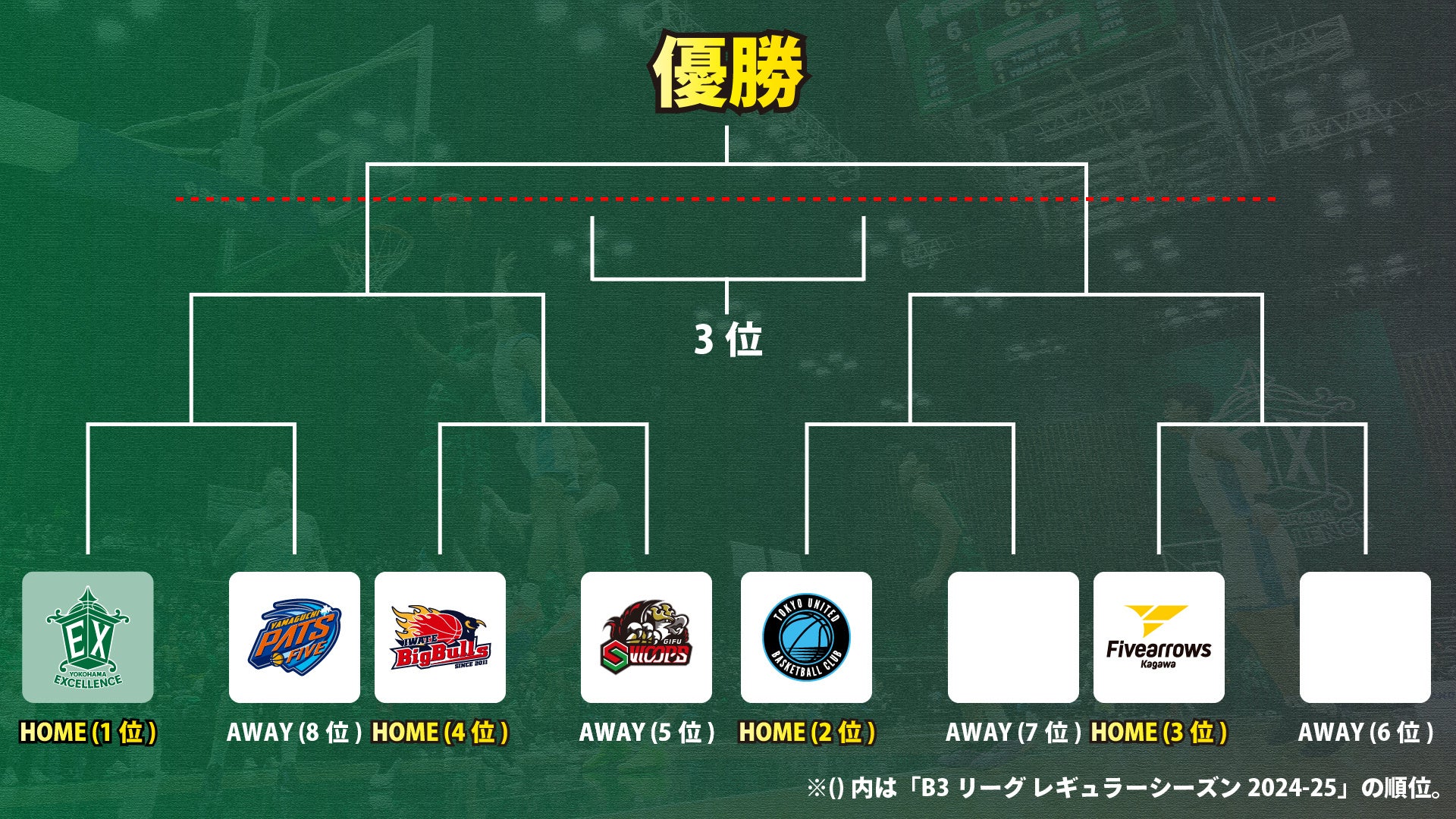 「B2昇格」・「B3優勝」をかけた「B3リーグ レギュラーシーズン 2024-25」上位8クラブによる3戦2勝方式のトーナメント戦。