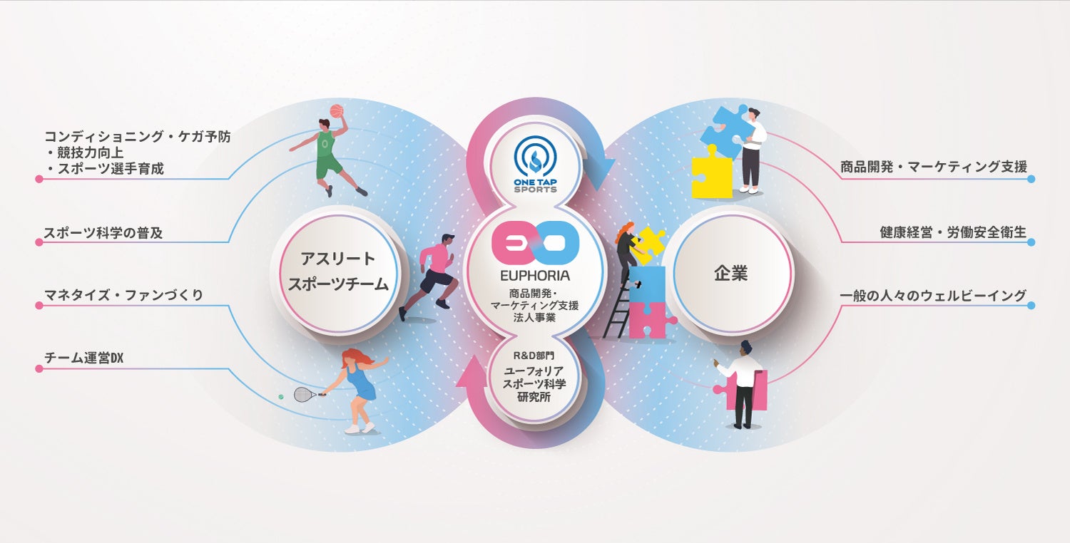 ユーフォリアは、投資家はじめ協業企業とのシナジー推進、スポーツ科学やアスリートのノウハウといったスポーツの価値を一般社会へ応用する新事業開発への投資を行い、スポーツ界と一般産業界をつなぐプラットフォーマーを目指してまいります。