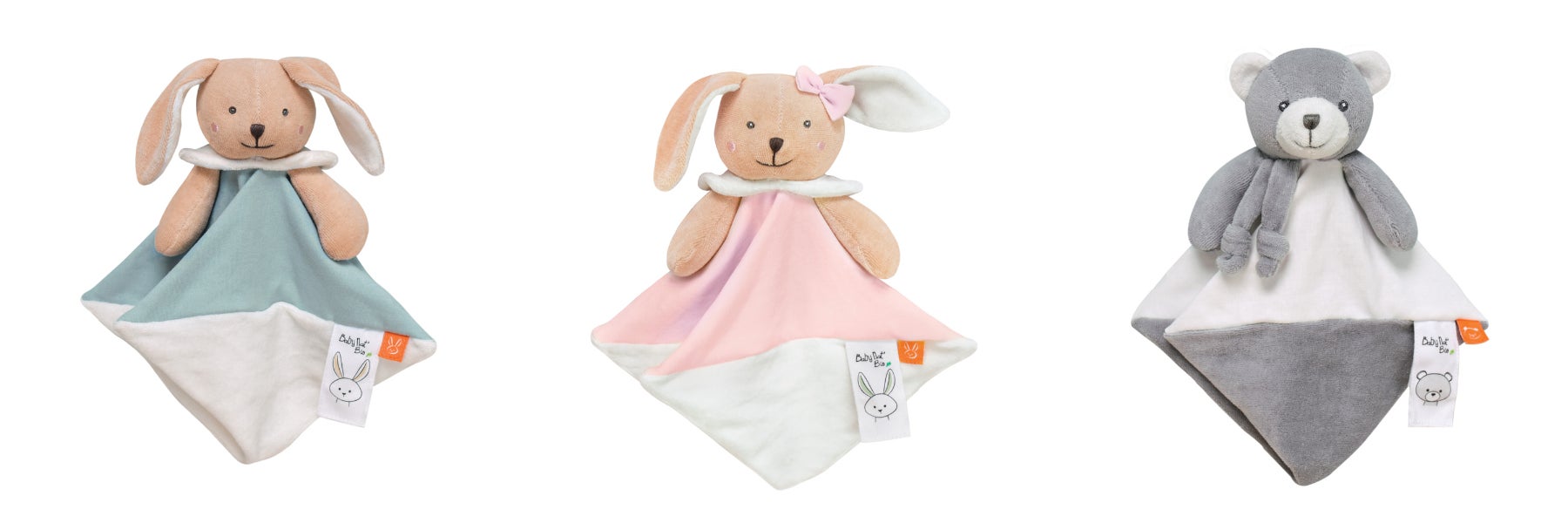 お子さまが抱きやすいぬいぐるみに、小さな布の"ドゥードゥー"が付いています。いつでも一緒に過ごすことにより、ママやパパのにおいが移って一人でいるときも安心感を与えてくれます。GOTS認証取得のオーガニック繊維使用。