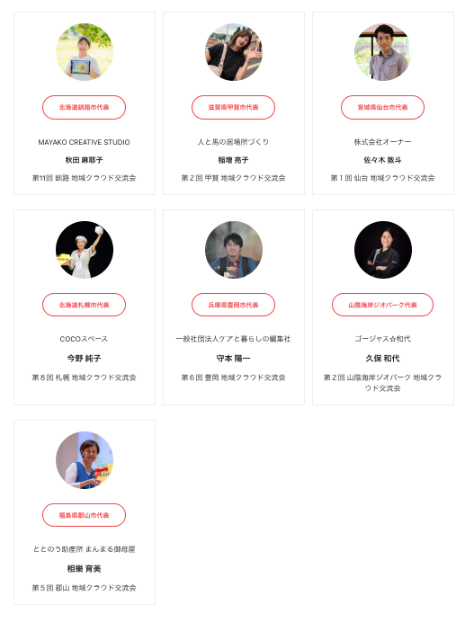 「地域クラウド交流会」は、サイボウズ株式会社がメソッド提供などの開催サポートを手掛け、市区町村を基本単位とする地域市民による起業家の応援を通じ、地域活性化を目指す交流会です。その地域に関わる方は、誰もが参加可能。毎回地域起業家5名が、自身の事業に関するプレゼンテーションを行い、参加者からのクラウドファンディングを投票形式で募ります。地域のつながりを生み出し、創業支援につながる場として評価されています。2023年10月6日時点で、25都道府県州において174回開催されてきました(アメリカ合衆国カリフォルニア州での開催含む)。