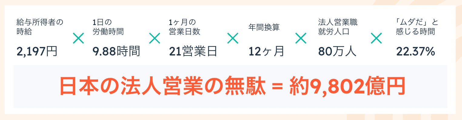 - 営業活動の無駄:「日本の営業活動における無駄な時間」は前回調査時から約1,500億円分増加し約1兆円に
