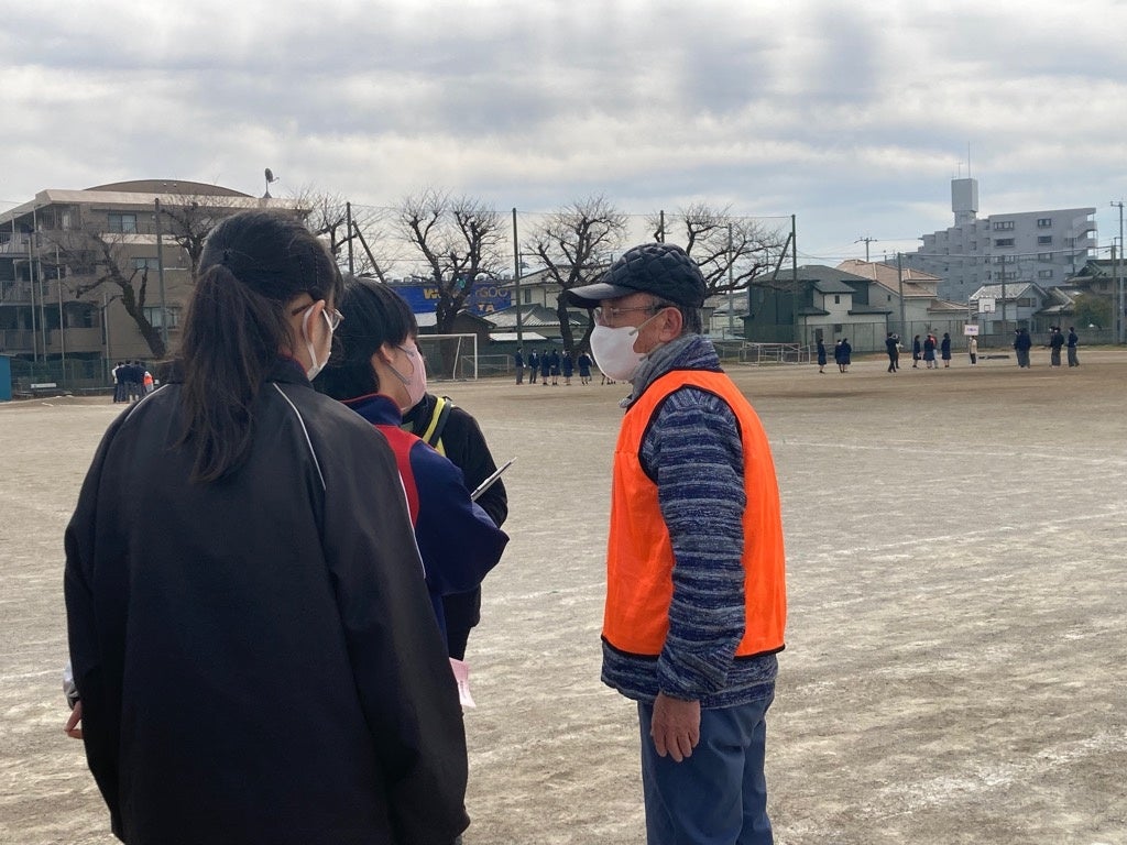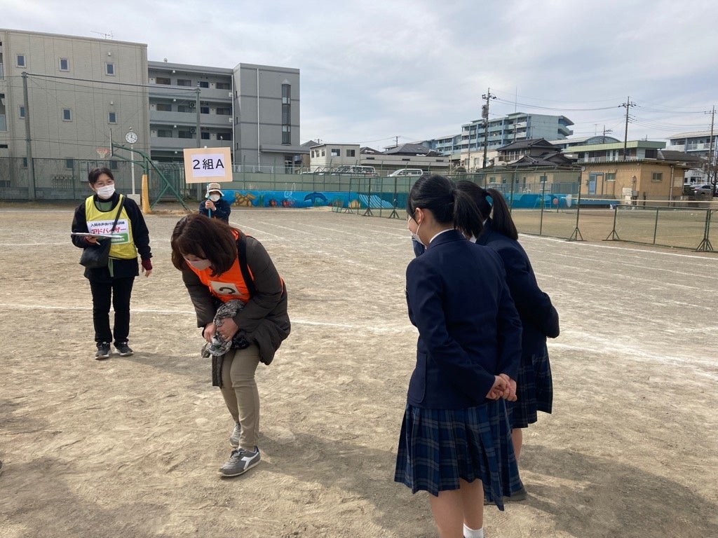 参加した3年⽣⼥⼦⽣徒は、「みんなに⾒られながらの体験は恥ずかしかったけど、まちでは声をかけられそう。」、また、3年⽣男⼦⽣徒は、「相⼿がどう思っているのか、気持ちをくみとるのが難しかった。」と話した。