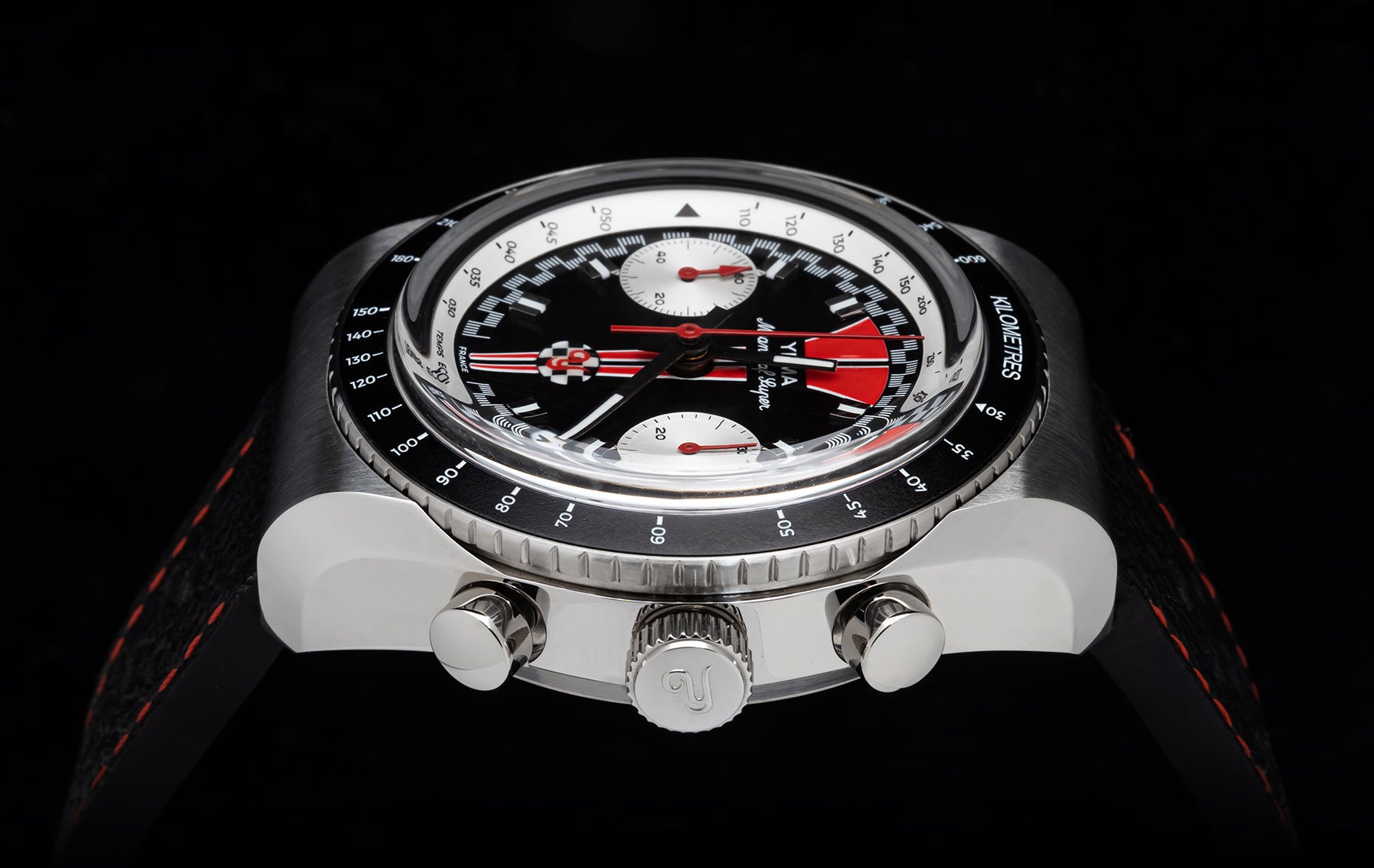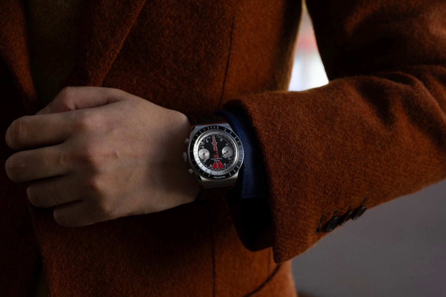 1970年代の「ミーングラフ」を基に、ダイアルデザイン、ケースフォルム、クロノグラフの配置など、細部にわたってオリジナルを忠実に復刻。当時のヴィンテージ感をそのままに、現代の技術を取り入れて仕上げられたクロノグラフウォッチです。