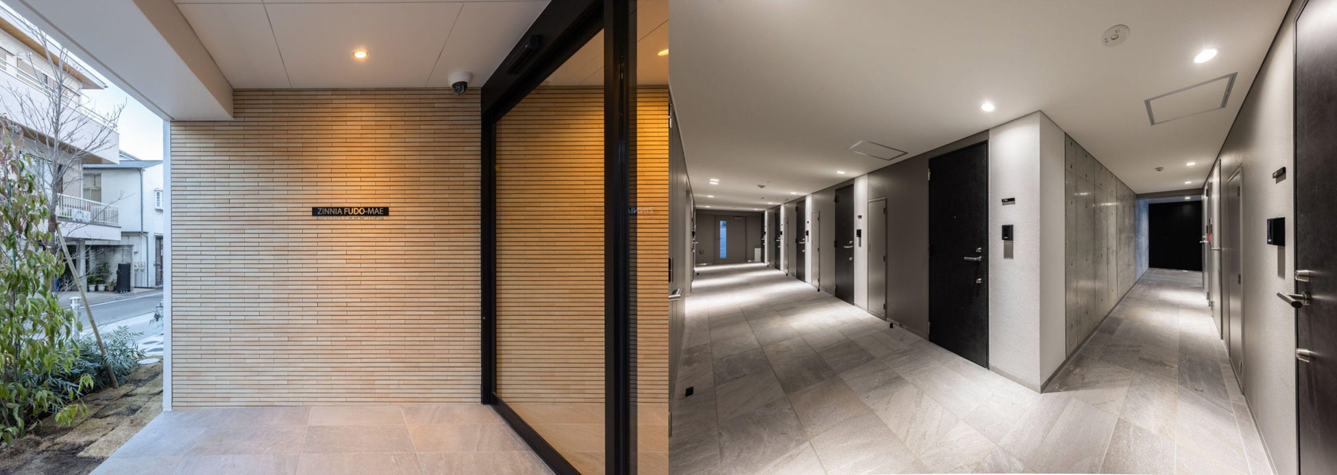 不動前駅は関東三十六不動霊場にも数えられる有名な寺院「 目黒不動尊 」 を名前の由来とする駅で、都営三 田線、東京メトロ東西線へ乗り入れ、オフィス街へのアクセスも良好です。また、反対方面では横浜へと続く東急東横 線へ一部乗り入れており、山手線「目黒」駅から1駅であることも含めて、各駅停車のみの駅ながら人気があります。 駅周辺は、品川区と目黒区の区界で、歴史深い地域であることから、その地に根付いた催しが多く、下町的な人との 関わりが濃いエリアです。今回、ファミリーにも単身者にも住みやすい住宅街として広がる治安の良い一帯に「地域に 愛着を持ち住み続ける人々へ」をコンセプトにした新たなプロトタイプとなる住まいを生み出しました。