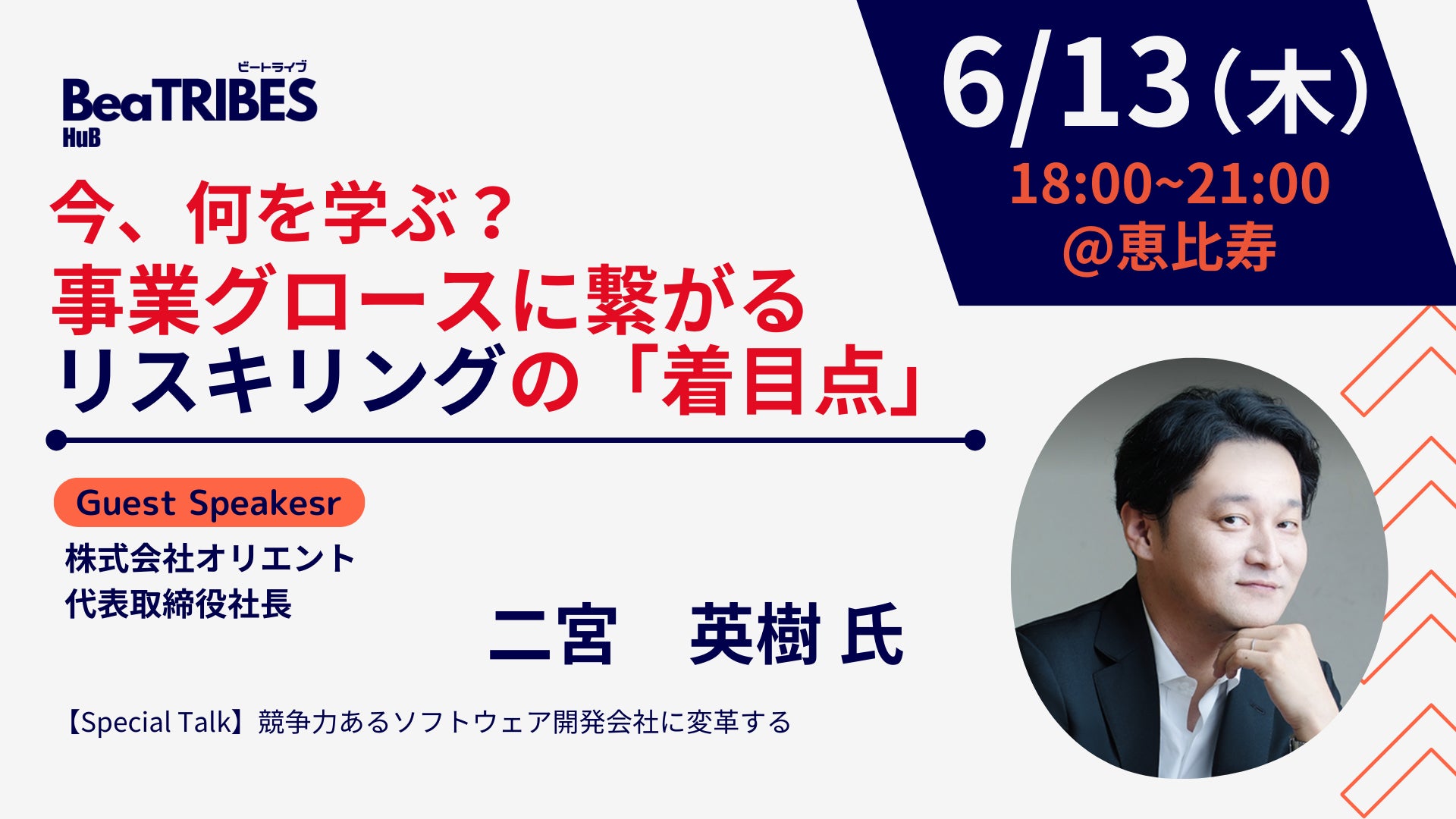 今回のBeaTRIBES HuBでは、『今、何を学ぶ?事業グロースに繋がるリスキリングの「着目点」』をテーマに開催しました。