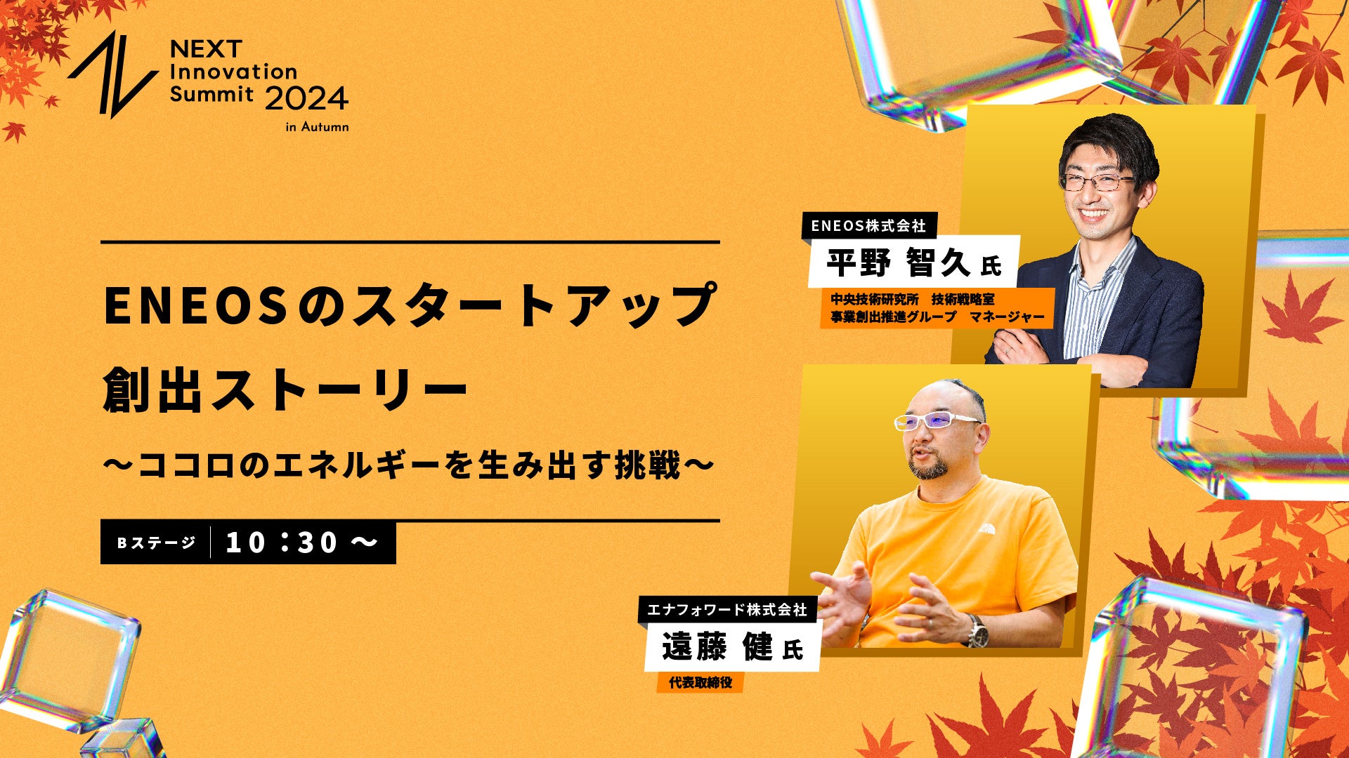 10:30〜11:15「ENEOSのスタートアップ創出ストーリー〜ココロのエネルギーを生み出す挑戦〜」