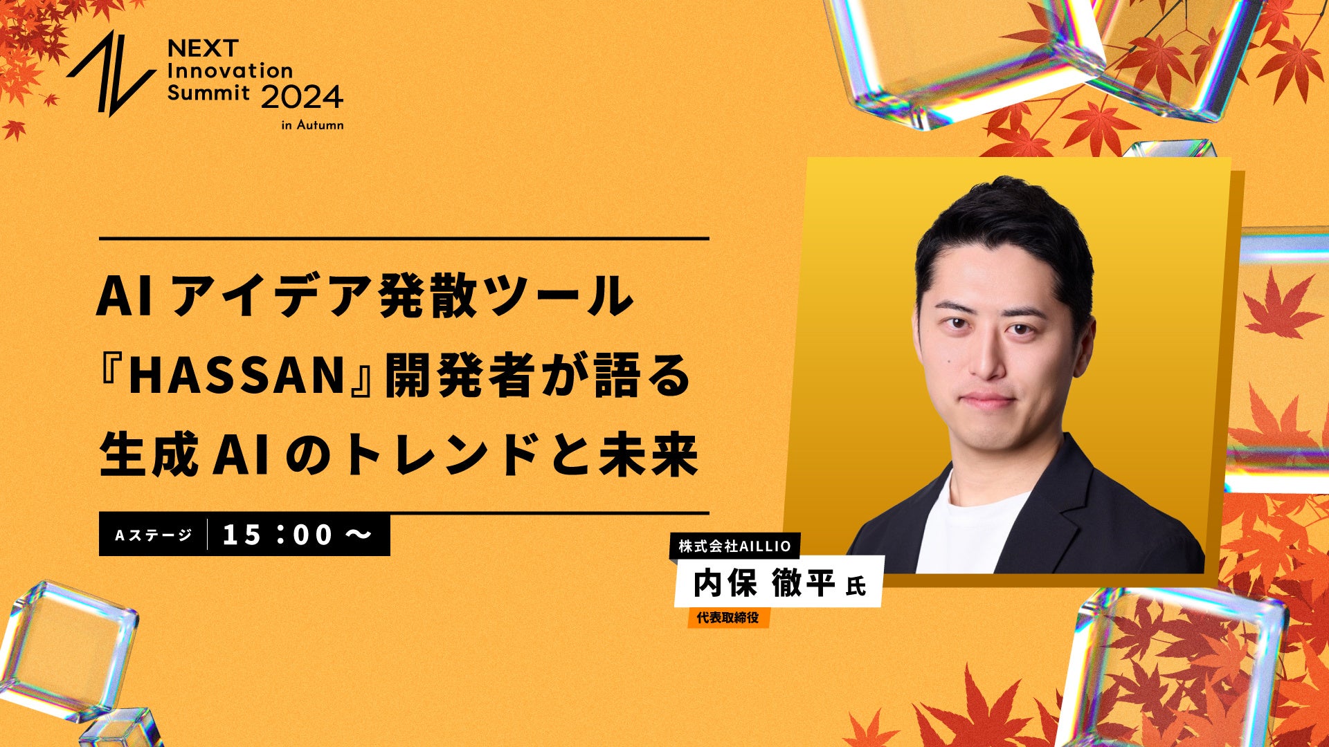 15:00〜15:45「AIアイデア発散ツール『HASSAN』開発者が語る 生成AIのトレンドと未来」