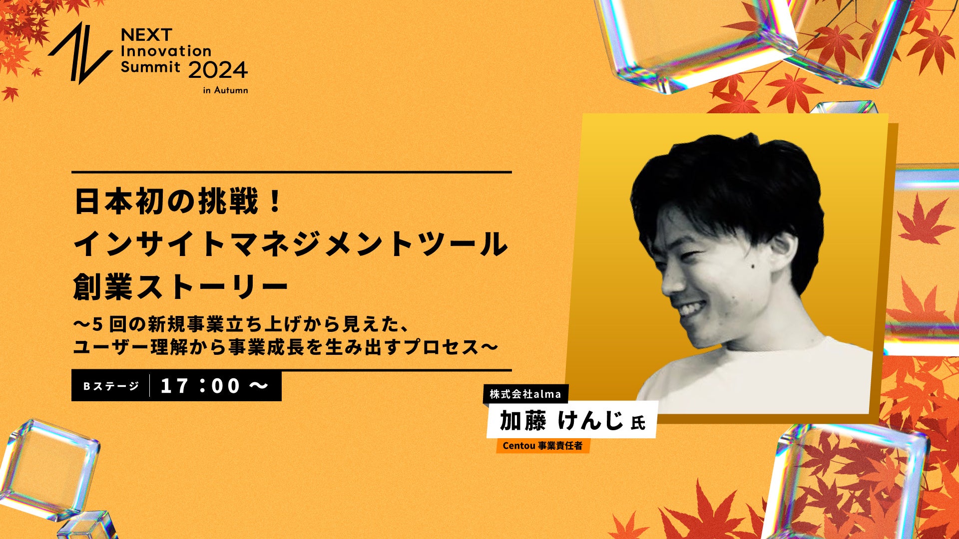 17:00〜17:45「日本初の挑戦!インサイトマネジメントツール創業ストーリー 〜5回の新規事業立ち上げから見えた、ユーザー理解から事業成長を生み出すプロセス〜」