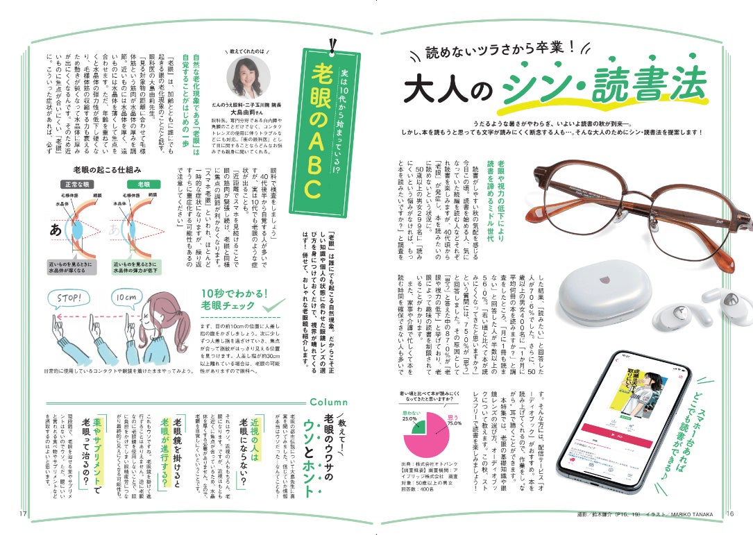 今回はめりぃさん世代にお悩みの方も多い「老眼」に注目。秋の読書を快適にするための、正しい老眼の知識や、老眼鏡の選び方を眼科医や眼鏡市場といった眼鏡メーカーにお聞きしました。