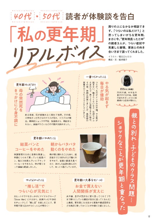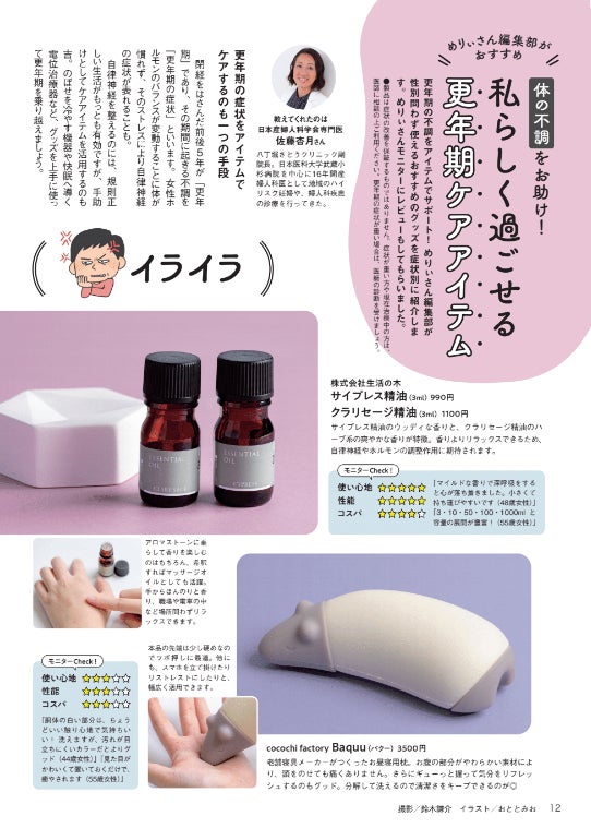 今回は男性更年期のお悩みやケアの方法や、更年期を経験した『めりぃさん』読者に大変だったことや生活の変化などリアルな体験談を語っていただきました。最後には更年期のお悩み別に編集部おすすめのケアアイテムもご紹介。ぜひ家族や夫婦で読んで、みんなで更年期を乗り越えていきましょう!