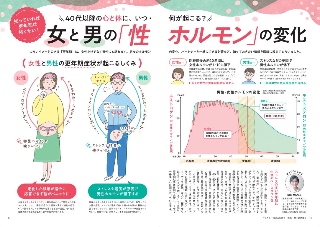 漠然とつらい、苦しいといったイメージを持たれがちな「更年期」。むやみに怖がるのではなく、更年期症状が起きる仕組みや男女の体のつくりを少しずつ知っていくことで、自分や周りの人への理解が深まり、気持ちにゆとりが出てくるはず。