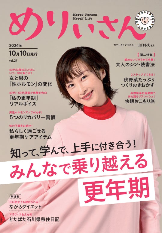 特集「みんなで乗り越える更年期」/表紙&インタビューはタレント・山口もえさん/情報誌『めりぃさん』vol.27 10月10日発刊