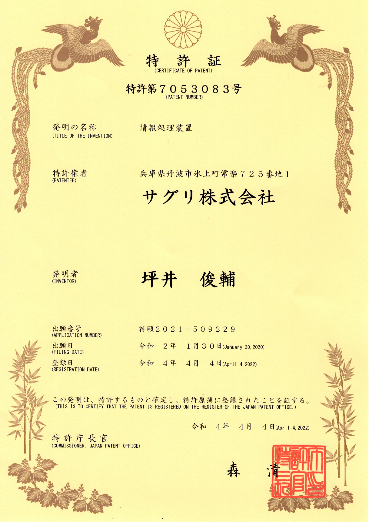 サグリ株式会社は、平成31年6月に兵庫県で創業を行うスタートアップ企業であり、令和3年6月にはリアルテックファンドなどから総額1.55億円の資金調達を発表しました。また、ひょうご神戸スタートアップファンドの第一号案件の出資となりました。令和3年度農林水産省 農林水産技術等大学発ベンチャーに認定され、近畿経済産業局より、J-Startup-KANSAIに選出。環境省スタートアップ大賞事業構想賞受賞や東洋経済2021すごいベンチャーに選出されました。また、令和3年1月にサグリ株式会社CTOとして岐阜大学准教授田中 貴 博士(農学)が就任しており、国立大学法人東海国立大学機構岐阜大学により岐阜大学発ベンチャーに認定されました。
