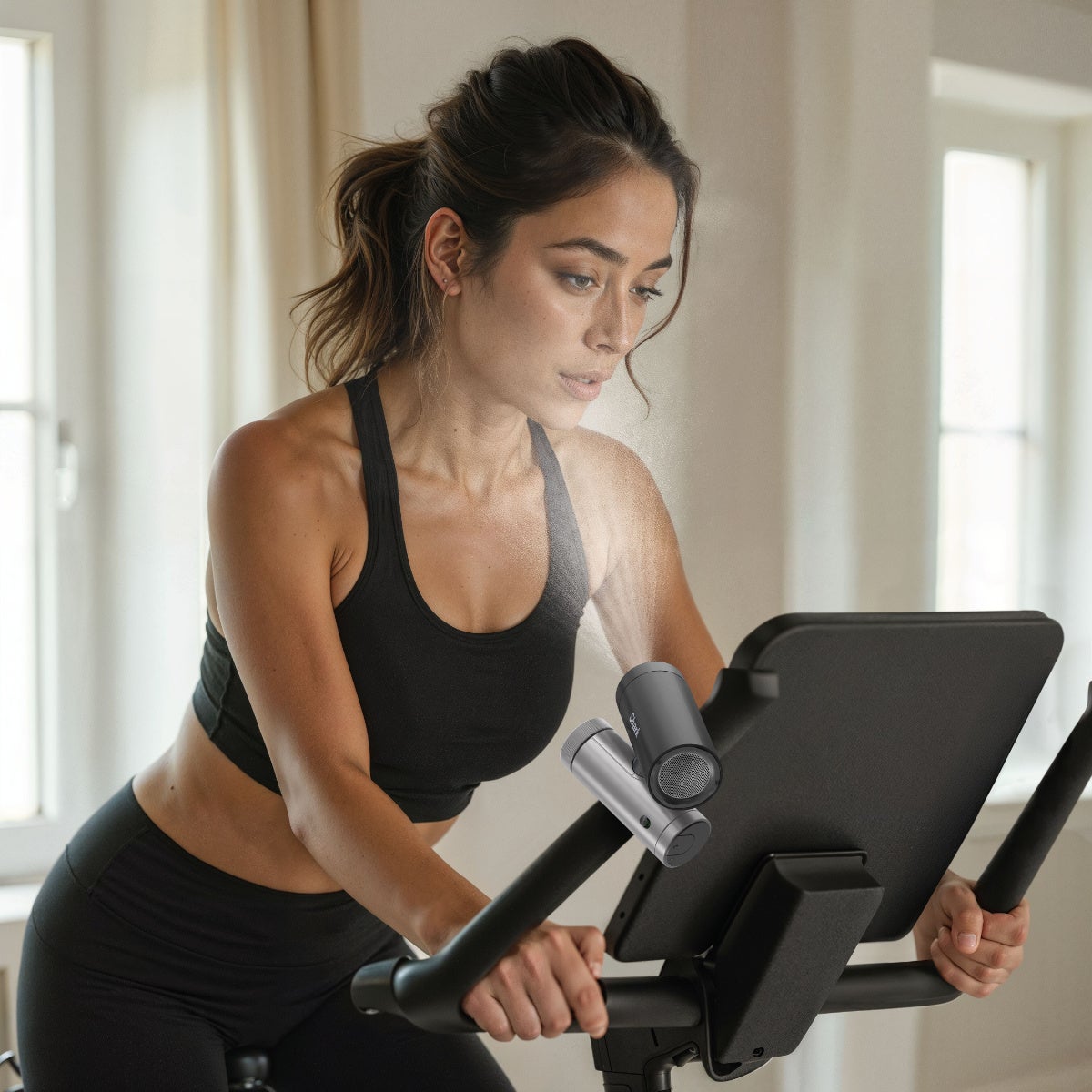 屋内・屋外対応のクーリングミスト:粒子の細かなドライミストで、屋内でも濡れずに使用可能。