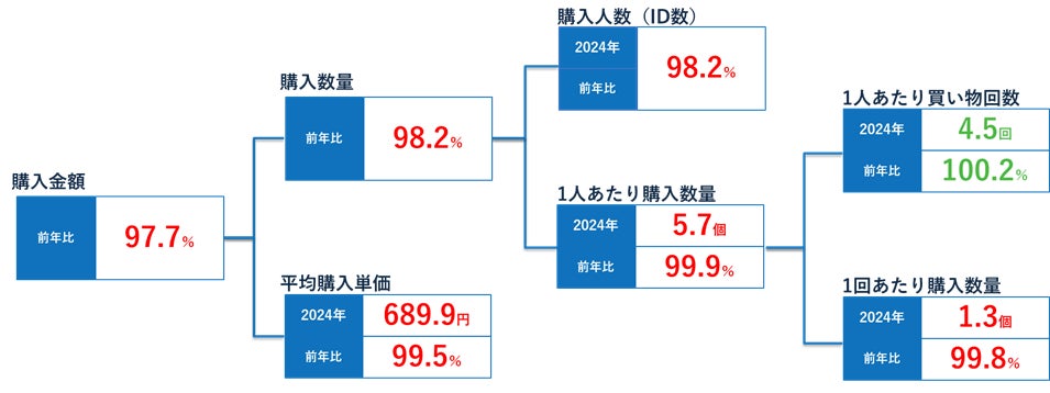 2024年における一人あたりの購入数量が前年比98.4%に減少