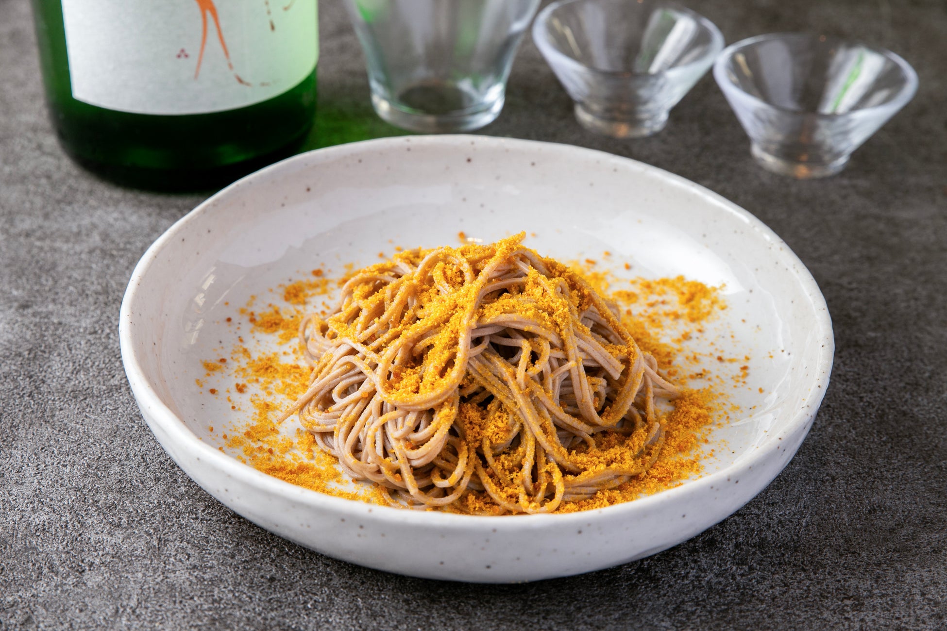 からすみの絶妙な塩味とコクが、香り高い蕎麦と絡み合い、贅沢な味わいが広がります。