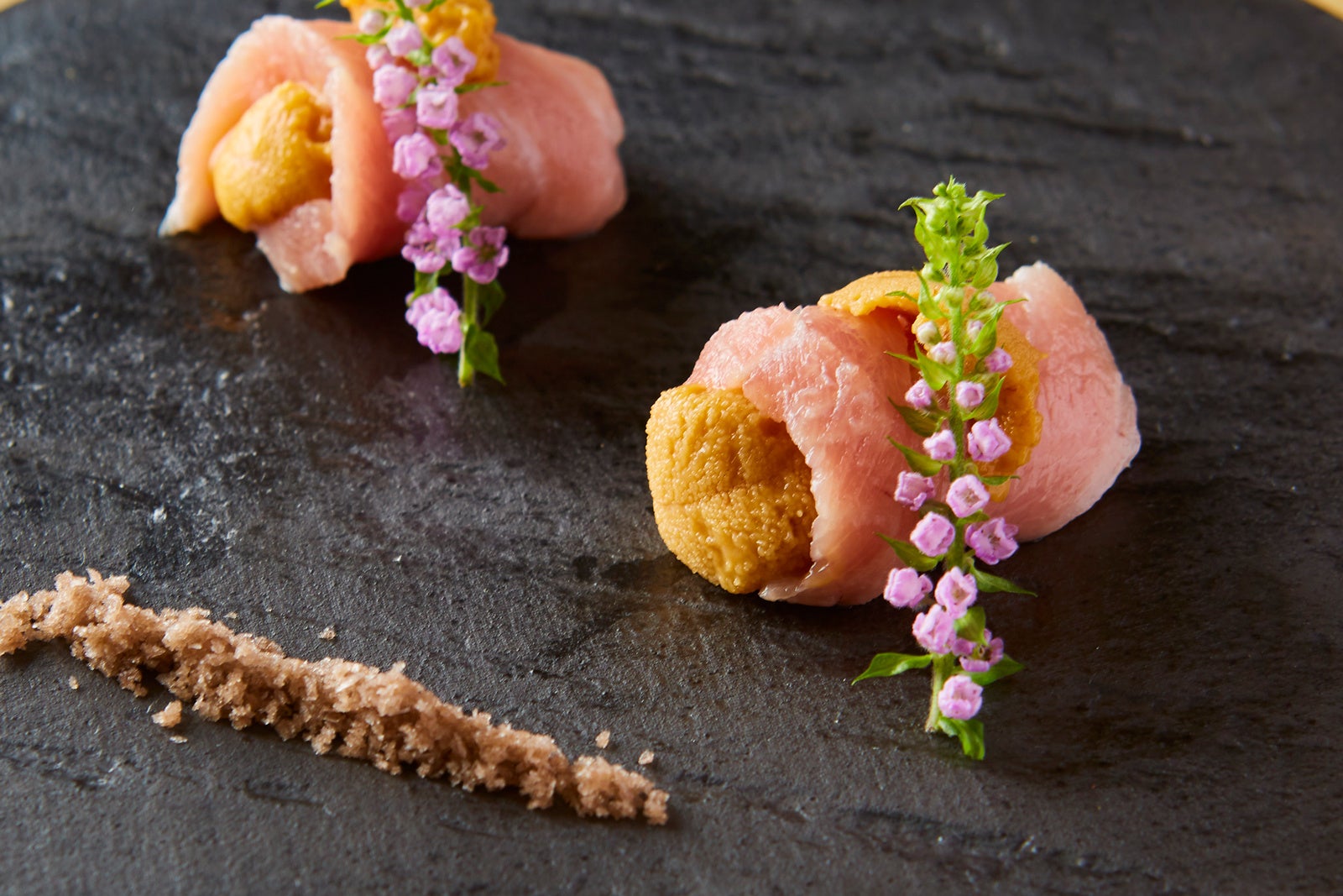 牛タンの旨みと雲丹の甘みが口の中に広がる至福の二重奏