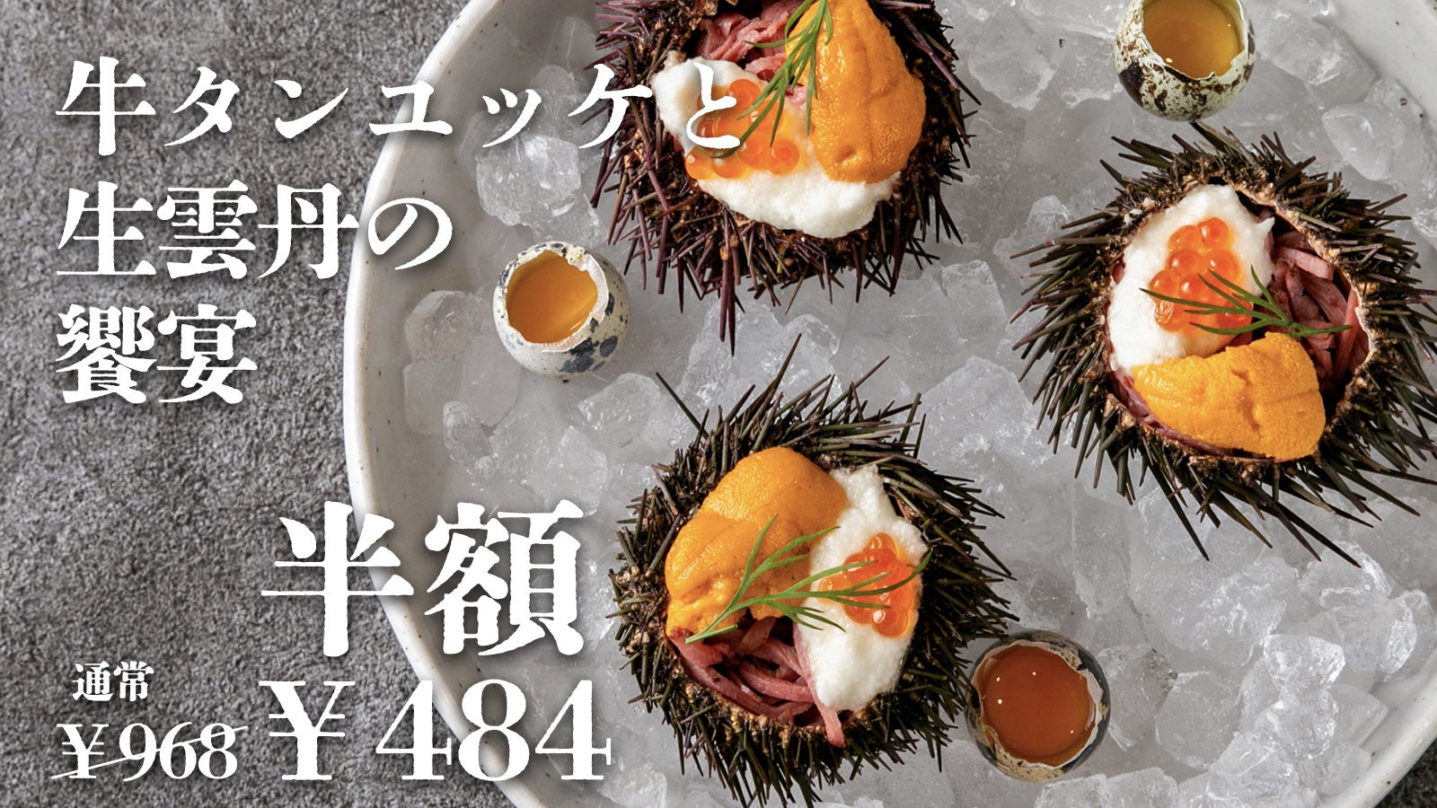 新メニュー「牛タンユッケと生雲丹の饗宴」提供開始に伴い半額キャンペーン実施!