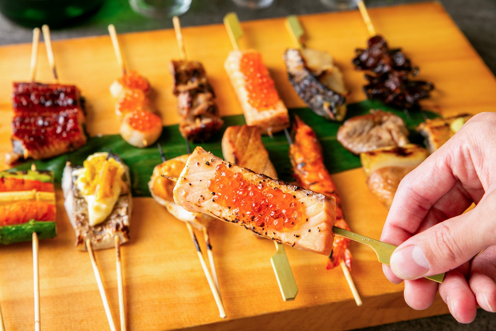 炭火串焼き(いくらとレアサーモン 炙り串)