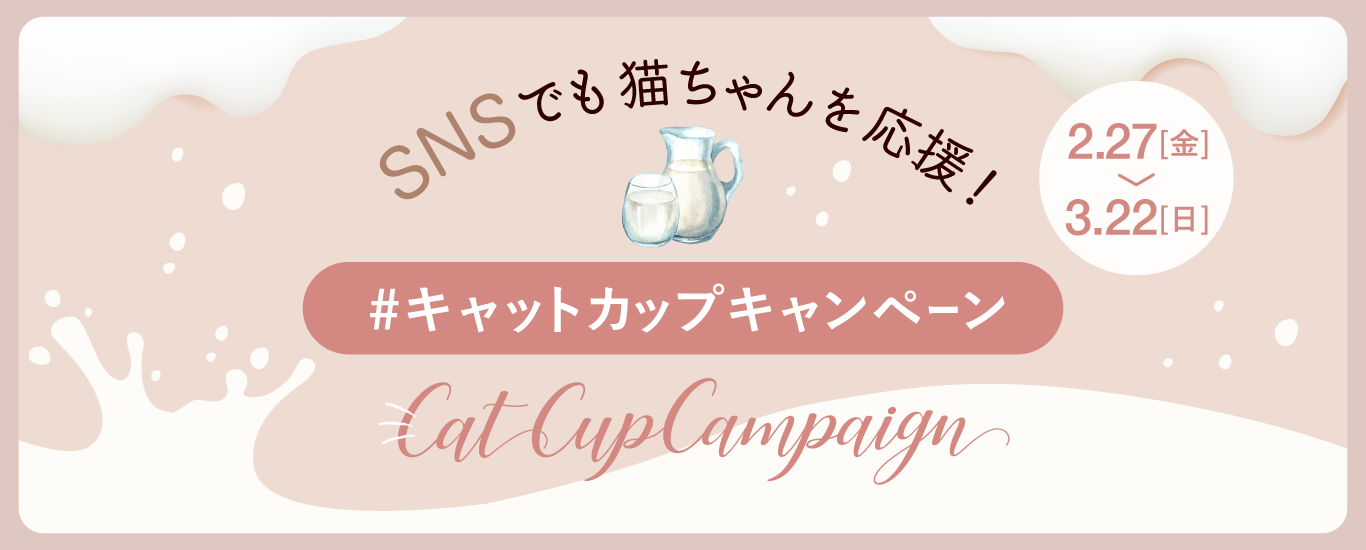 「キャットカップキャンペーン」に連動した企画として、2月27日(金)から3月22日(日)に、SNSのチャリティキャンペーンを実施します。キャットカップご購入者以外も広く手軽に参加いただけて、保護猫の子猫たちにミルクを贈ることができる企画です。