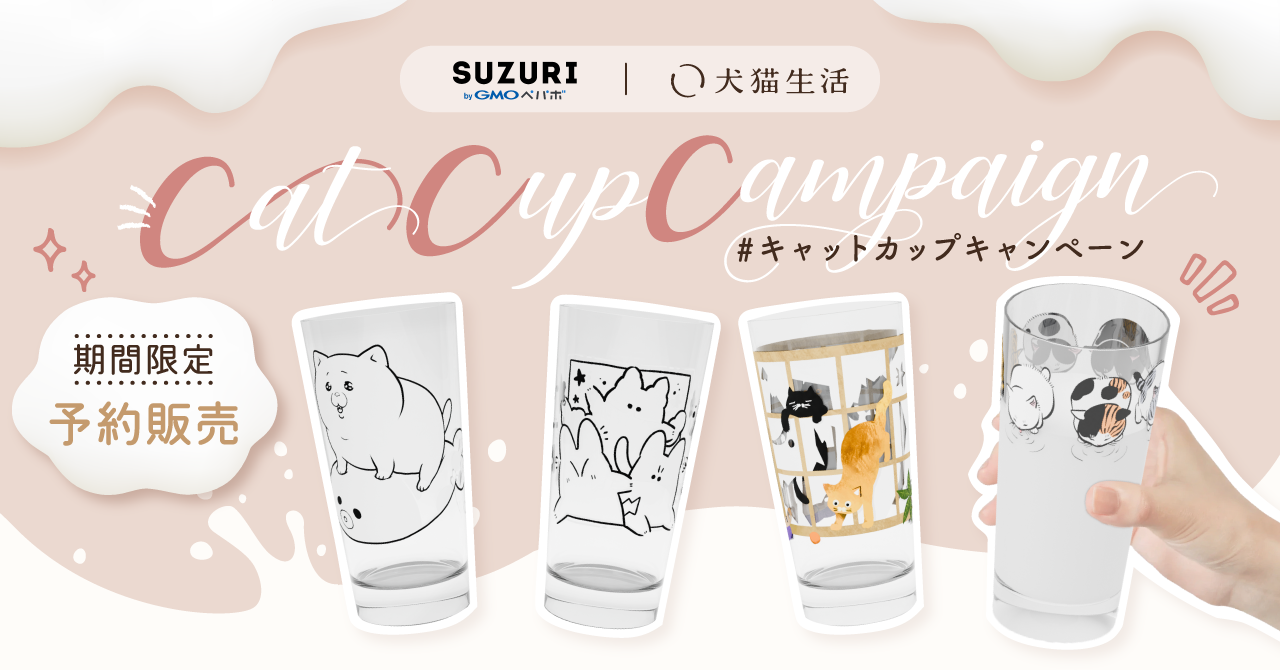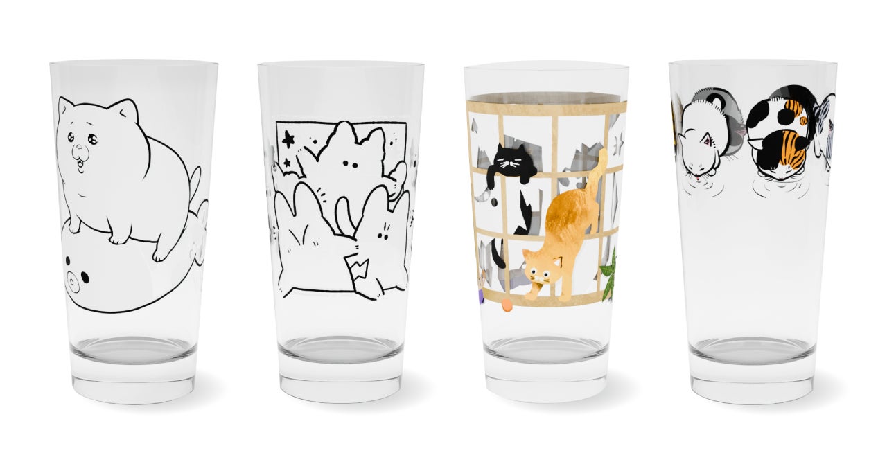 注ぐ液体によって猫の模様や表情が変わる「キャットカップ」のロンググラスを、2月19日(木)から3月22日(日)まで予約販売を行います。今回は、オリジナルグッズ作成・販売サービス「SUZURI byGMOペパボ」の人気クリエイターとコラボレーションしたオリジナルカップ4種類を、犬猫生活のECサイトと「SUZURI byGMOペパボ」で販売します。