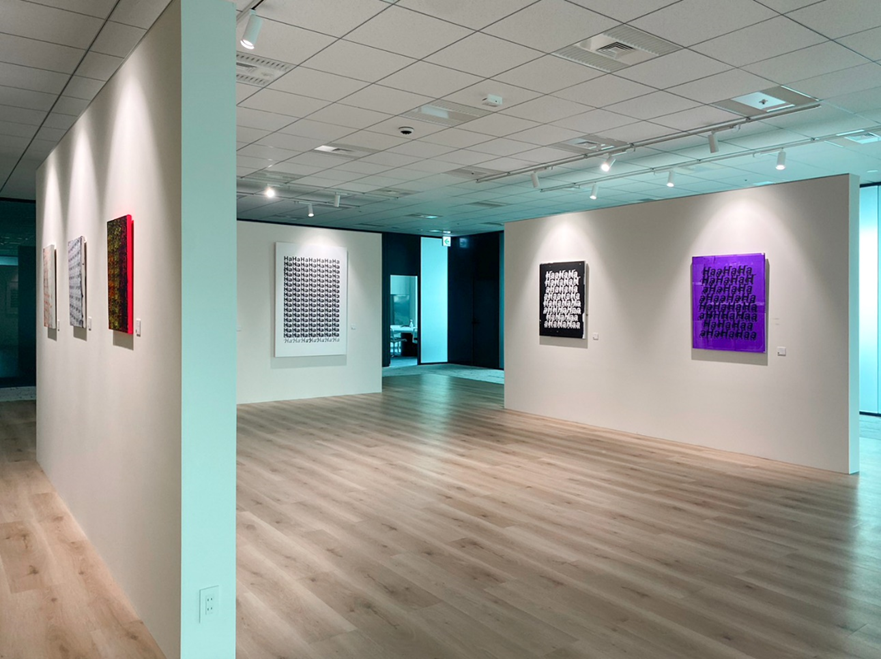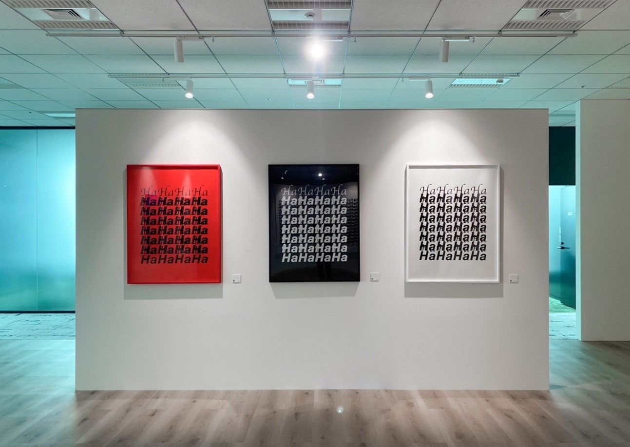 “hahaha” の一連のシリーズは2020年、ロンドン滞在中に失声症になった経験から始まった作品です。笑い声をモチーフに、混沌とする現代社会に対する批評的な姿勢が作品によく表れています。