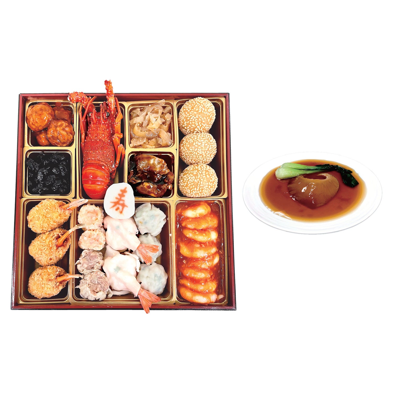 ・内容:海老のチリソース、黒酢酢豚、中華クラゲ、肉団子、黒豆煮、有頭海老の姿煮、かに爪フライ、翡翠エビニラまん、姿蒸し海老しゅうまい、海老焼売、肉焼売、胡麻団子、寿かまぼこ