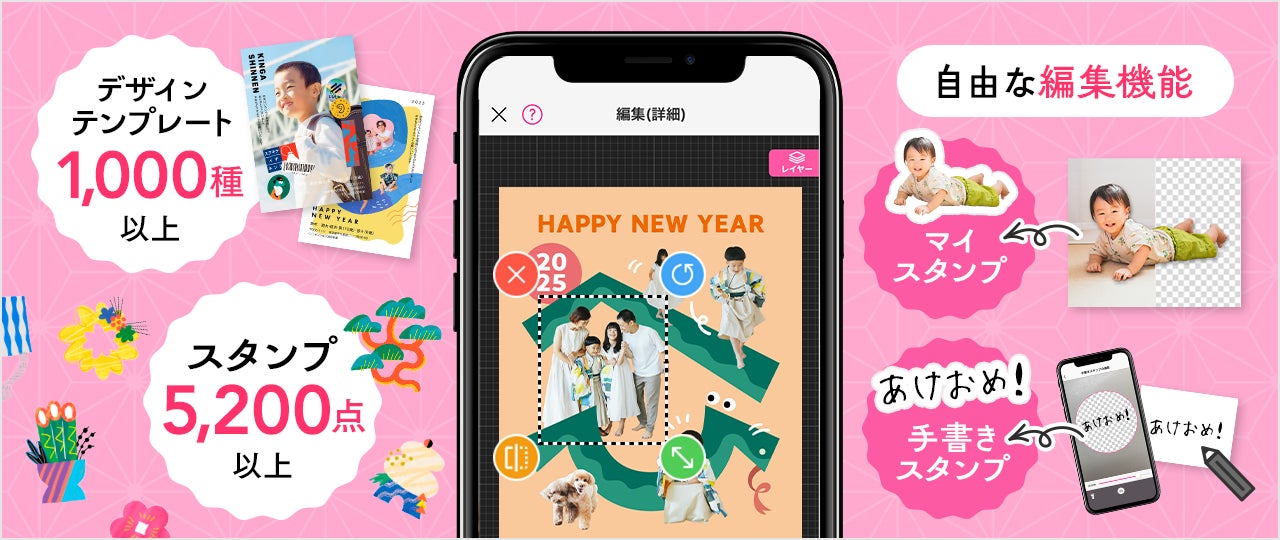 動画付き年賀状や無料画像保存など毎年人気の機能も搭載
