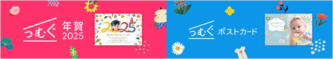 「つむぐ」は、スマートフォンでオリジナルの年賀状やポストカードを作成できるアプリです。年賀状作成がメインの「つむぐ年賀」と、季節問わず思い出を作品に残せる「つむぐポストカード」の2シリーズを展開しています。