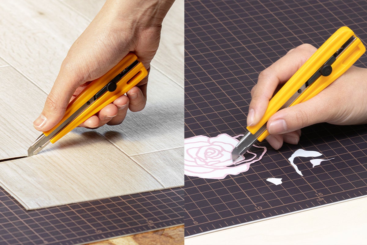 またボディは小型カッターナイフとしては幅の広い形状なので握りやすく、力がかけやすくなっているため、繊細な操作性を損なうことなく力強いカットが可能です。