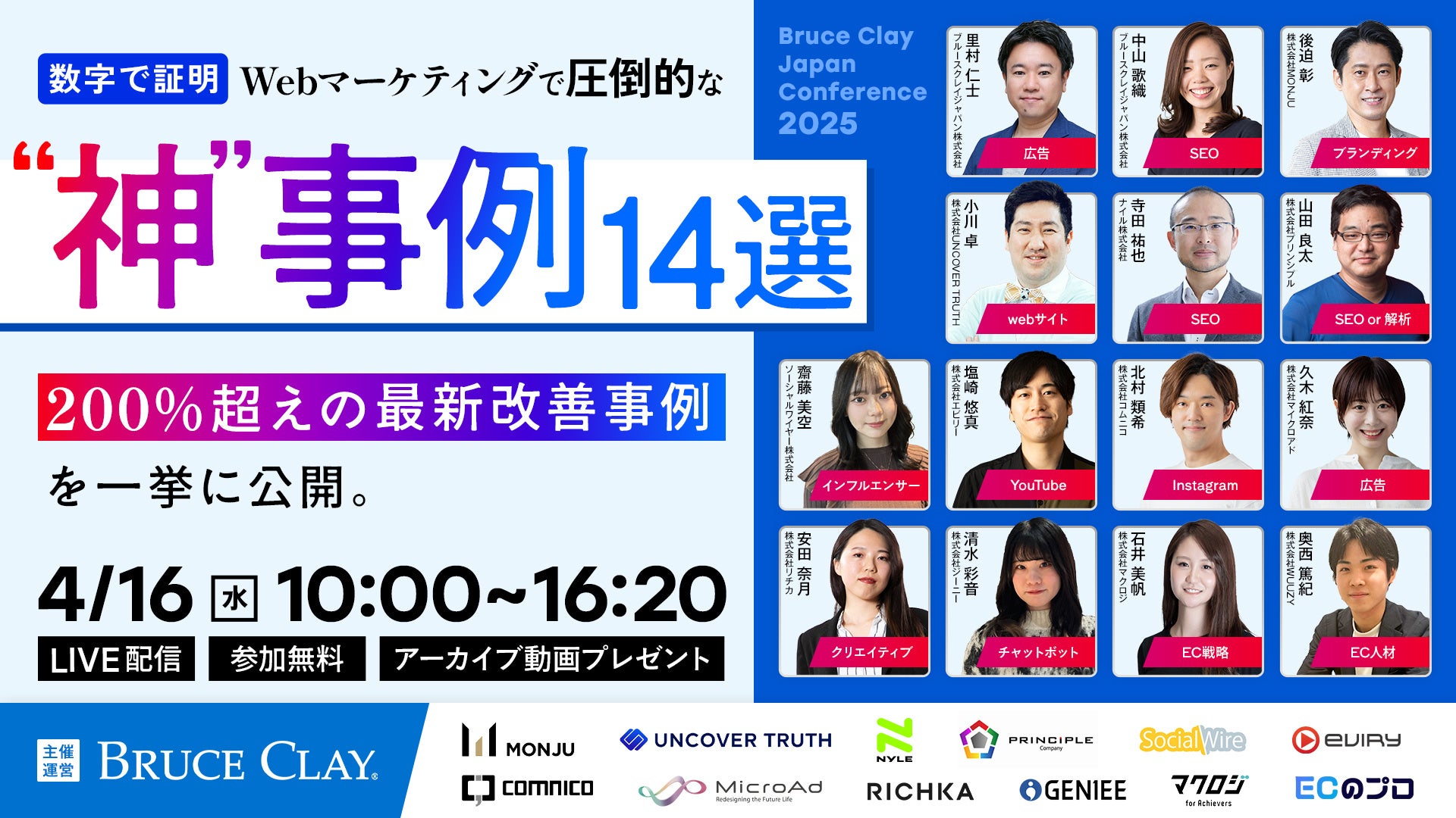 4/16開催【Bruce Clay Japan Conference 2025】 数字で証明!!Webマーケティングで圧倒的な“神”事例14選 〜200%超えの最新改善事例を一挙公開〜
