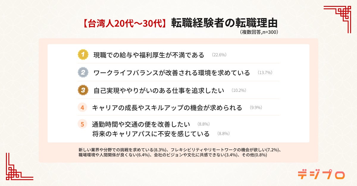 デジプロ、台湾の20代~30代男女の転職実態調査を実施