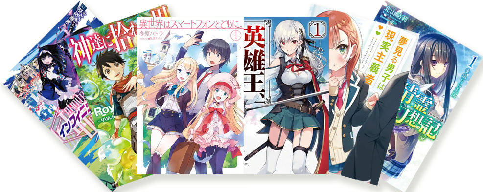 『英雄王、武を極めるため転生す ~そして、世界最強の見習い騎士♀~』『精霊幻想記』『異世界はスマートフォンとともに。』『神達に拾われた男』など、アニメ化やコミカライズされた人気作が充実。 男性・女性向けや、ジャンルを問わず幅広い作品を刊行しています。